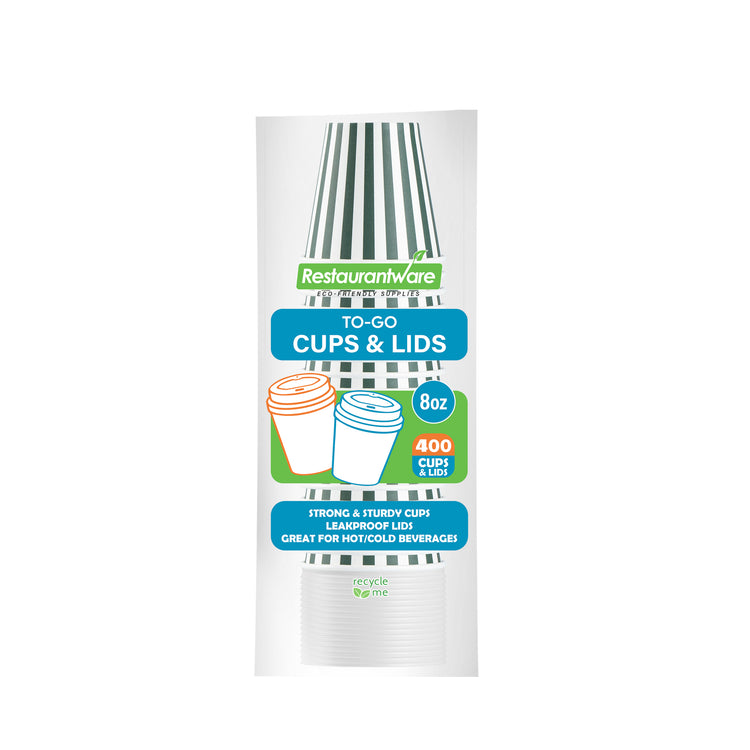 Savor the joy of serving your hot beverages in our Restpresso 8-ounce Forest Green and White Stripe Paper Single Wall Coffee Cups. These paper coffee cups, with their striking forest green and white stripe design, will make a lasting impression on your customers. Perfect for both hot and cold beverages, these disposable hot cups are versatile and practical, serving a variety of needs within the foodservice industry. Built with a greaseproof PE liner, these single wall coffee cups avert leaks and spills, ensuring a comfortable coffee experience for your patrons. These coffee cups are also designed with a rolled rim, providing a comfortable drinking experience and a secure lid fit that comes with them. Uniquely crafted, these single-use coffee cups can hold all kinds of beverages. Match up these stylish coffee cups with our array of protective sleeves designed to keep your hands cool while enjoying your hot drink. With a capacity of 8-ounce, these paper coffee cups are the ideal size for serving premium coffee, lattes, or teas, and their dimensions of 3.5 inches in diameter by 4.25 inches in height make them easy to hold and enjoy. Sold in a 400 count box. Sleeves are available and sold separately.