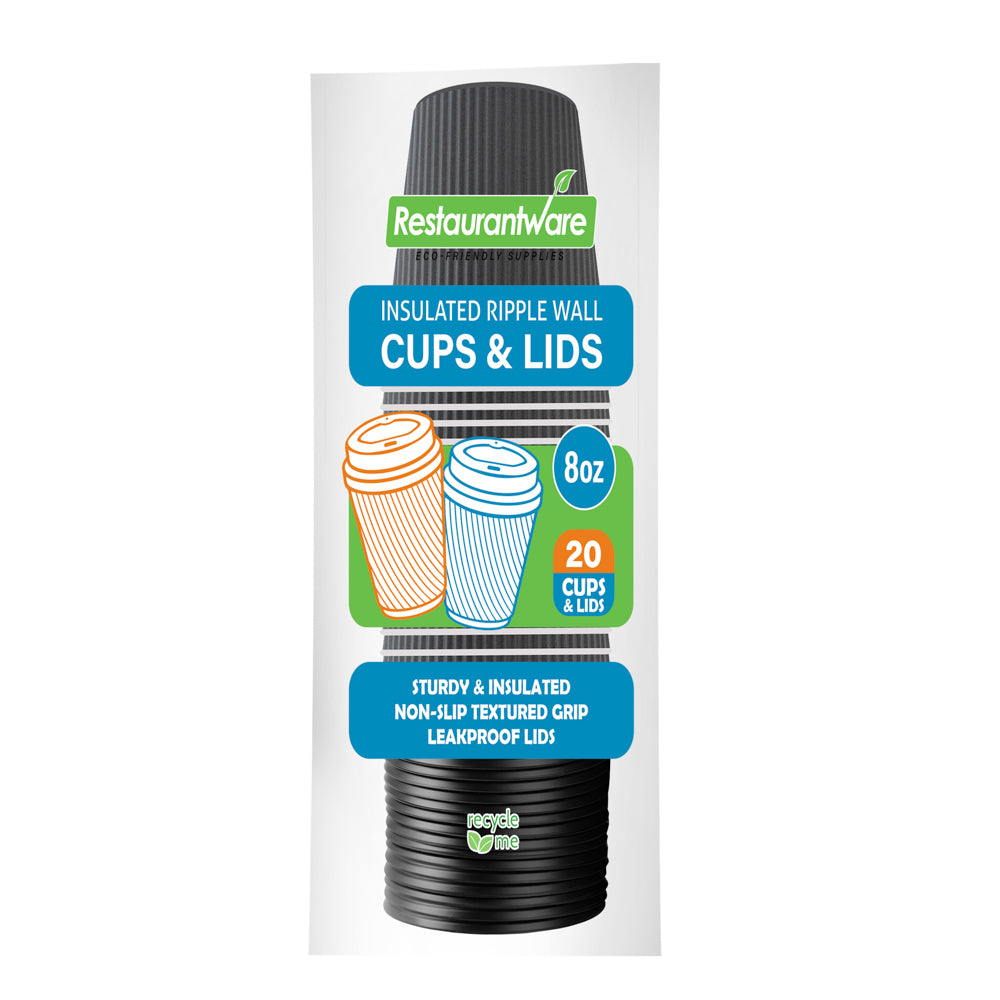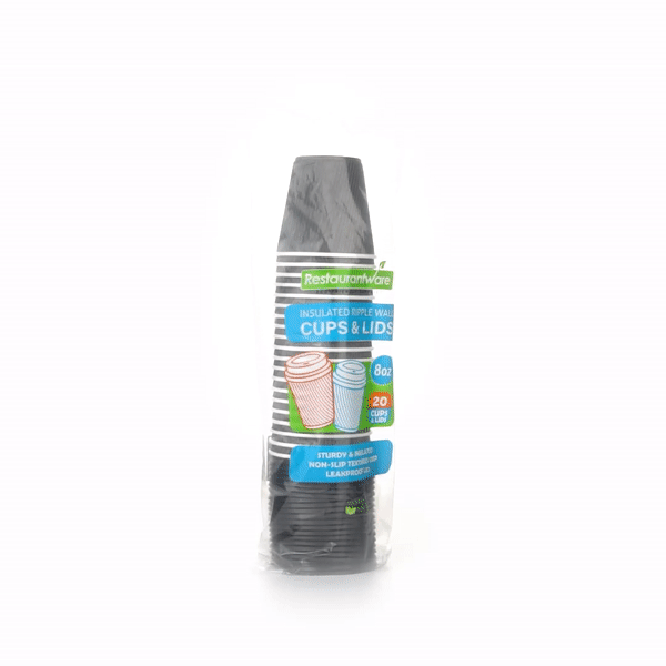Ensure optimal beverage service with heat-retaining ripple wall coffee cups. The Restpresso 8 oz Gray Paper Ripple Wall Coffee Cups, measuring 3.6 inches by 3.6 inches by 4.1 inches, are crafted from sturdy paper and feature a ripple wall design that insulates drinks, eliminating the need for additional sleeves and keeping beverages hot and ready to enjoy. These paper coffee cups with lids include secure black lids that prevent spills, making them ideal for coffee to-go cups in bustling cafés or busy catering events. With a greaseproof lining, these cups are not only perfect for coffee but also suitable for serving hot soups and stews. Enhance your drink presentation with the stylish gray finish while ensuring convenience and safety during transport. Elevate your beverage service today with these versatile coffee to-go cups. Sold in a 20 count box.