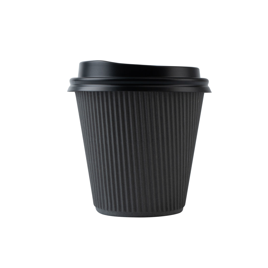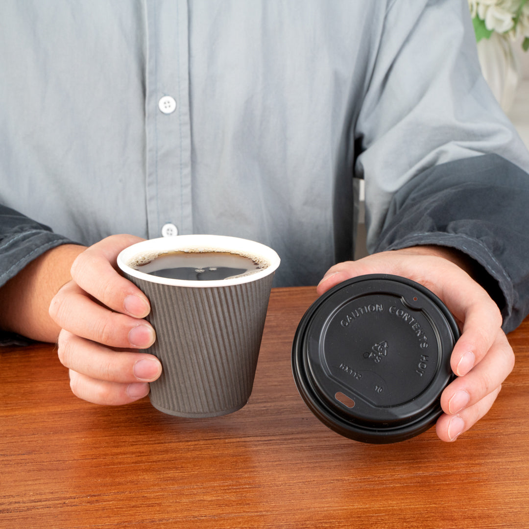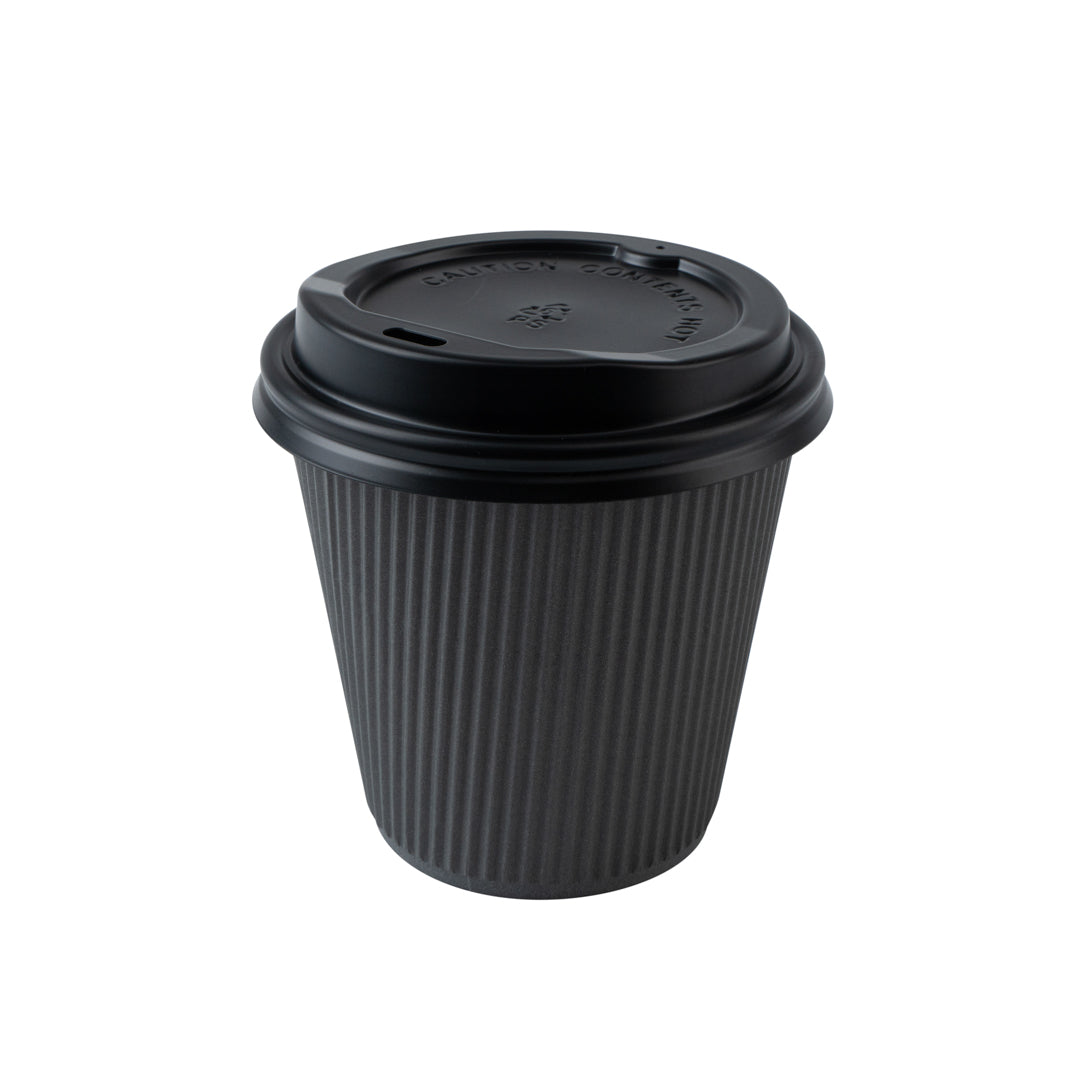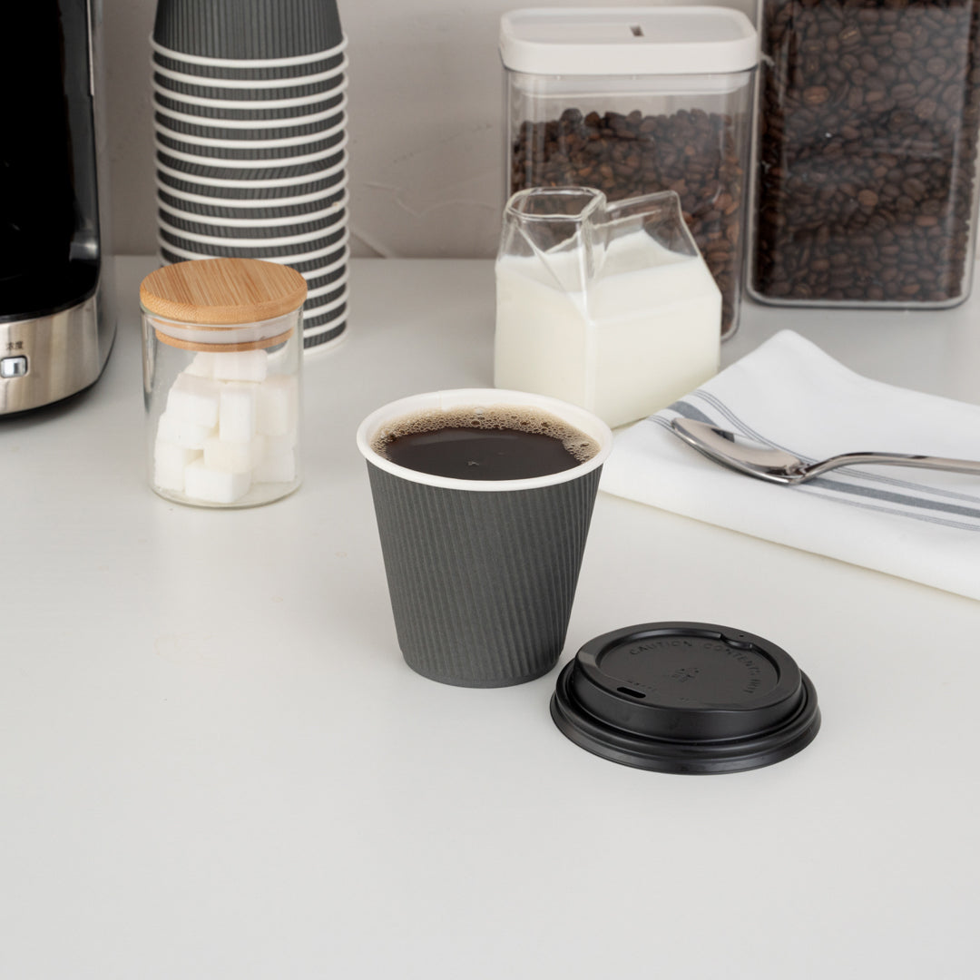 8 OZ GRAY PAPER RIPPLE WALL COFFEE CUP - WITH BLACK LID