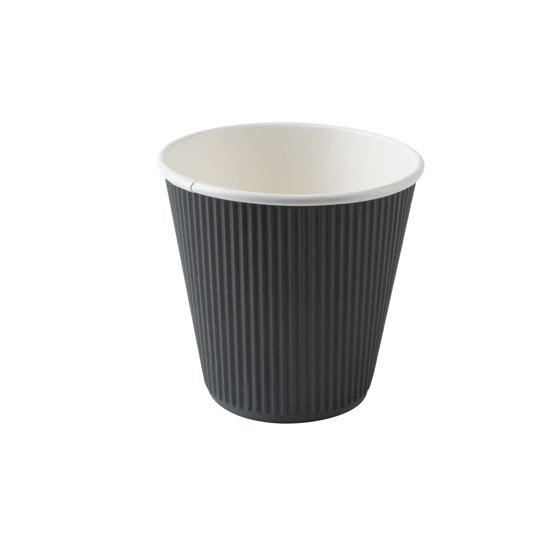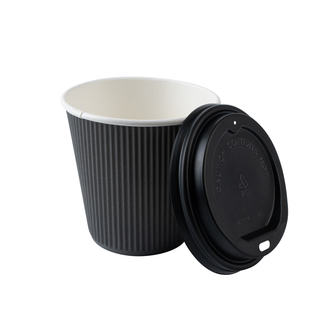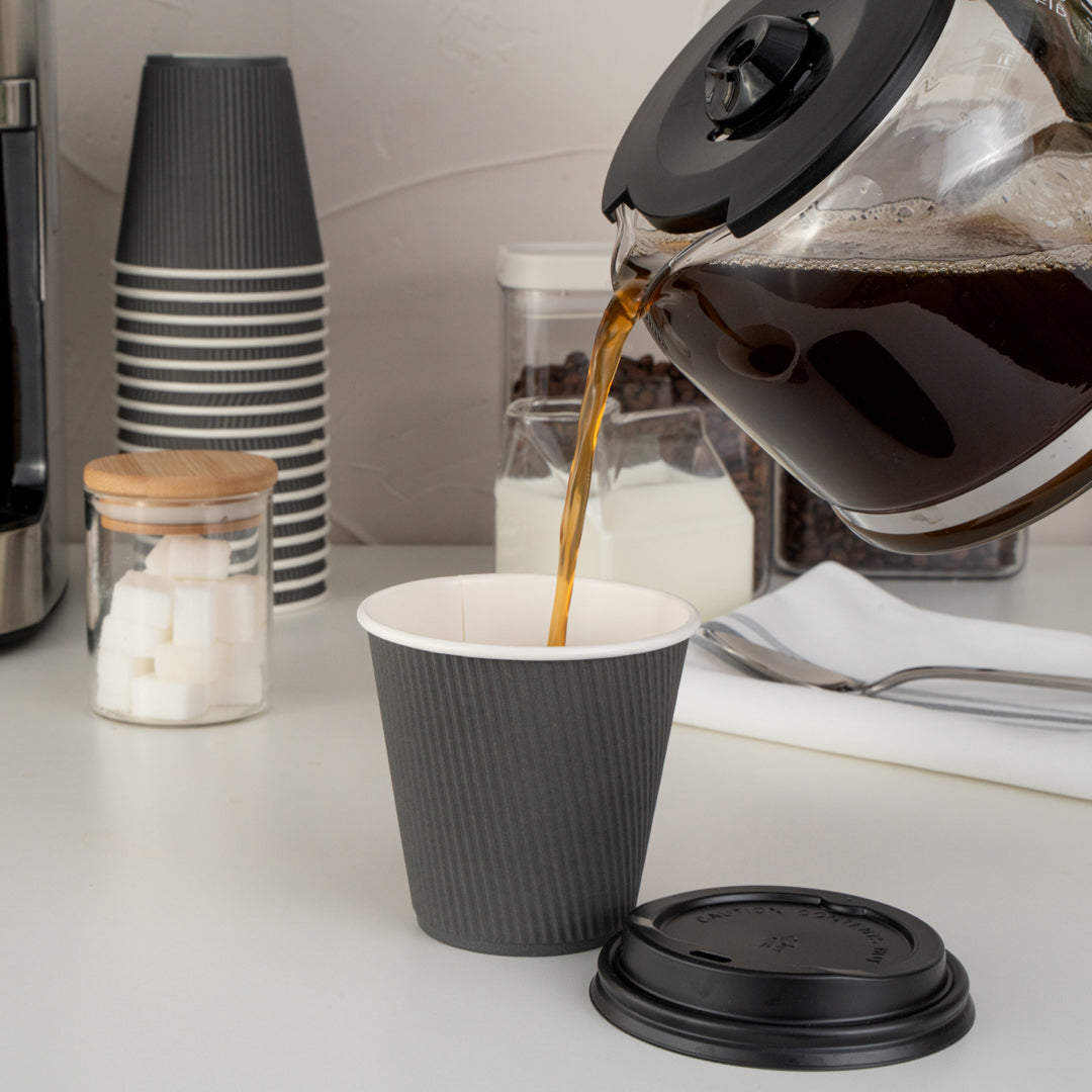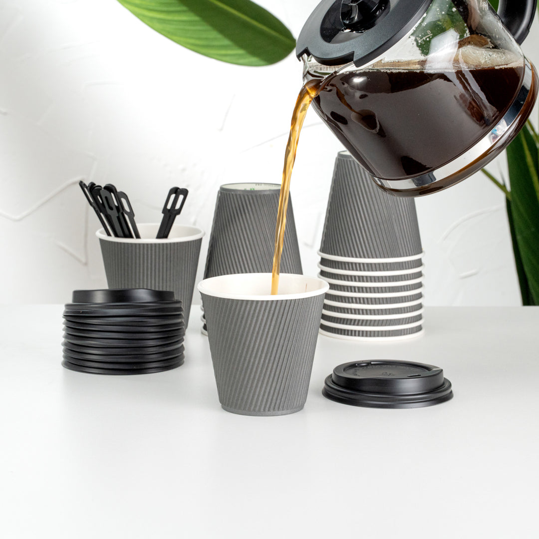 8 OZ GRAY PAPER RIPPLE WALL COFFEE CUP - WITH BLACK LID