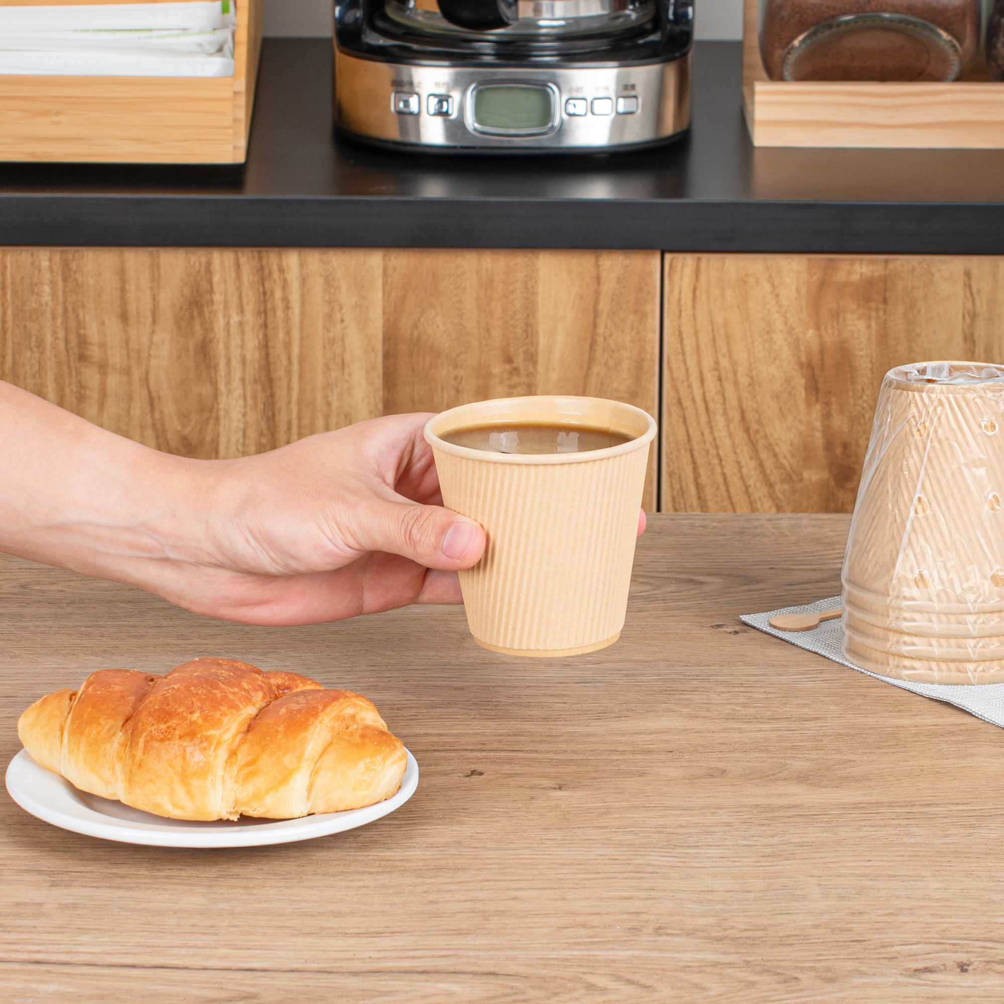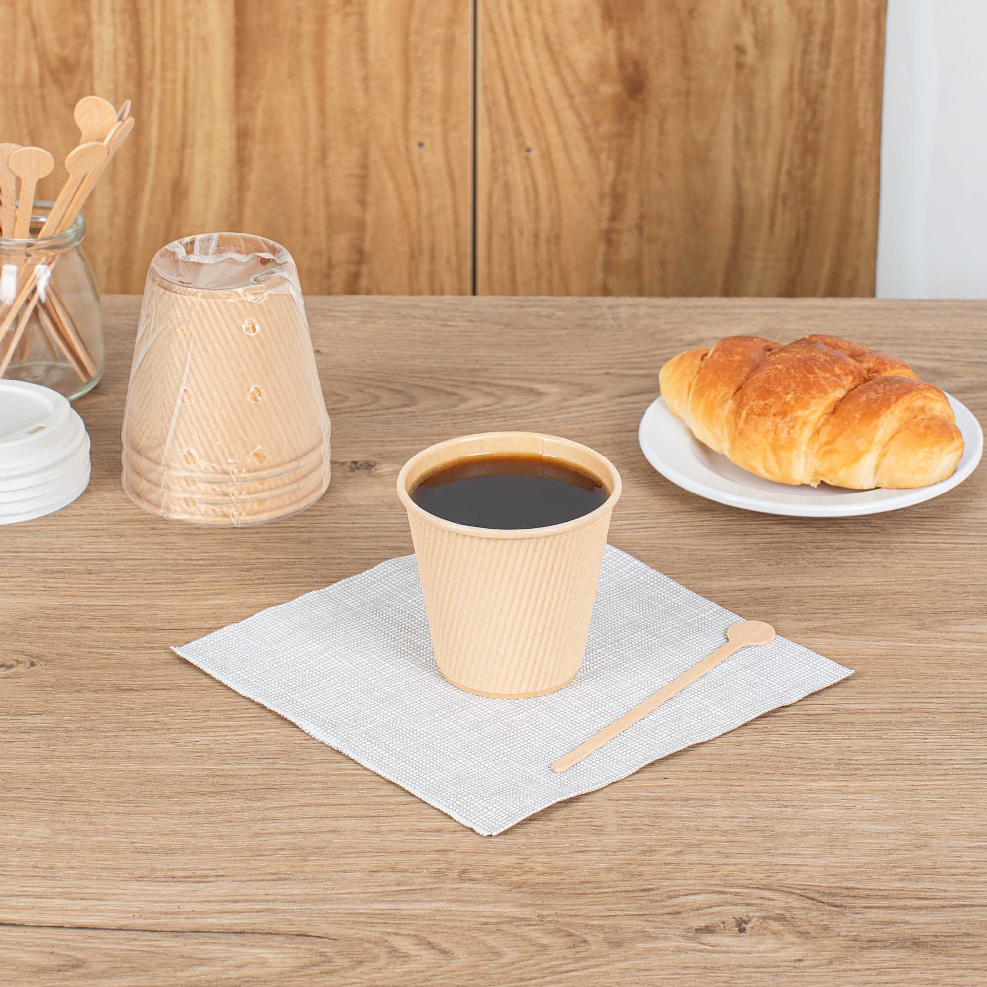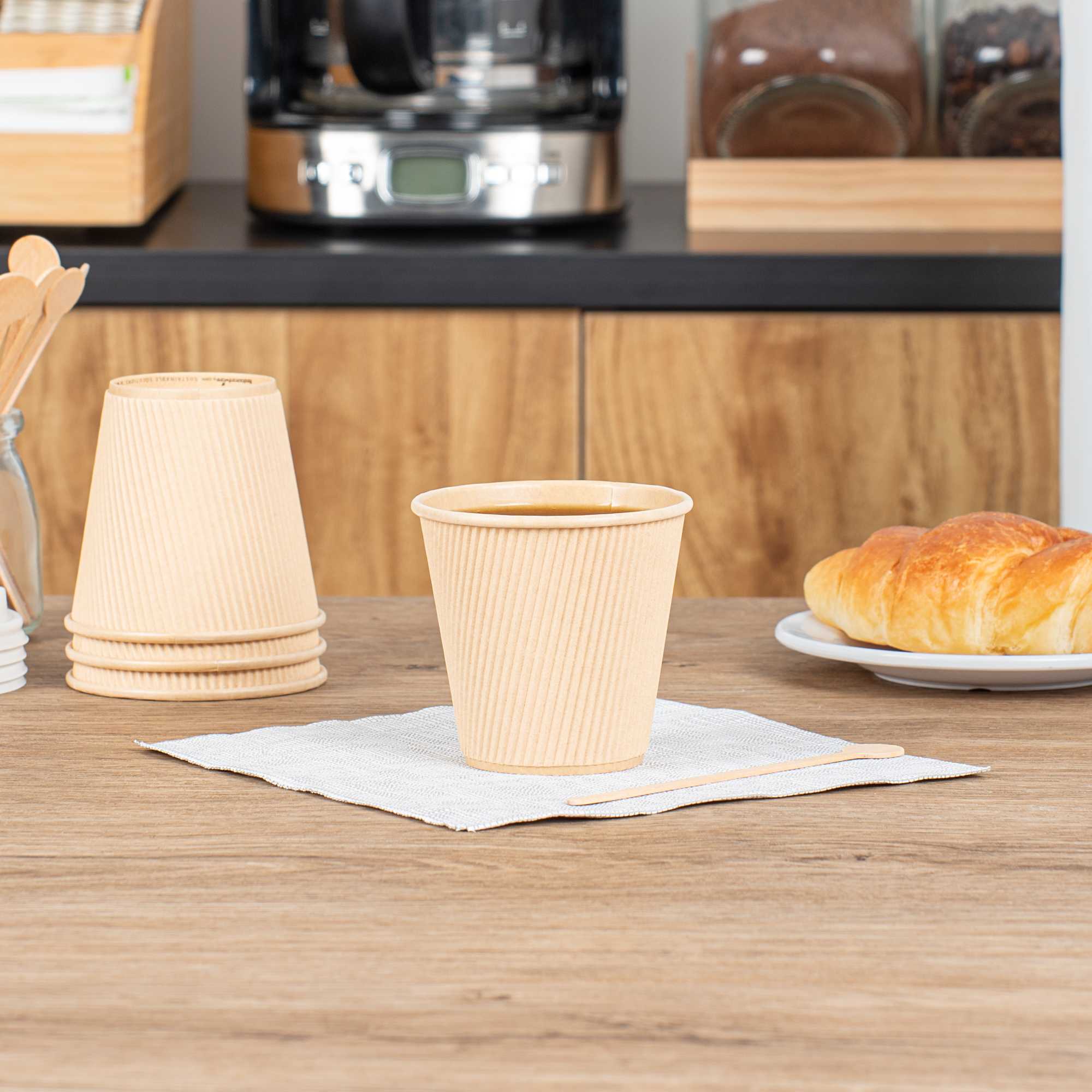 8 OZ KRAFT PAPER HOT CUP- INDIVIDUALLY WRAPPED,COMPOSTABLE,RIPPLE WALL