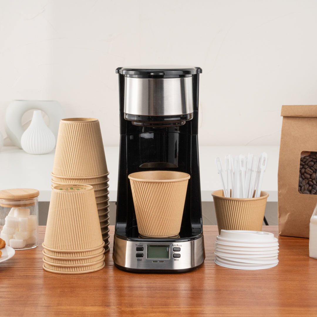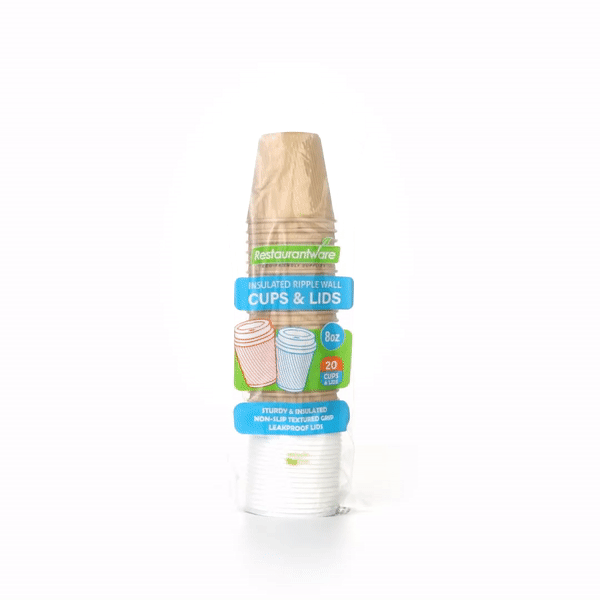 Ensure hot beverages stay warm and secure with these Restpresso 8 oz Kraft Paper Ripple Wall Coffee Cups. The ripple wall design provides exceptional insulation, making these insulated coffee cups ideal for maintaining the perfect temperature of your coffee while keeping hands comfortable. Made from kraft paper, these eco-friendly disposable coffee cups offer a stylish and sustainable solution for cafés aiming to reduce their environmental impact. The included white lids fit tightly to prevent spills, ensuring on-the-go convenience. With their greaseproof lining, these ripple wall coffee cups effectively prevent leaks, whether you're serving hot coffee or cold beverages. The 3.6 inches by 3.6 inches by 4.1 inches dimensions make them a perfect fit for standard coffee servings, minimizing waste. Elevate your coffee service and support sustainable practices with these recyclable cups. Sold in a 400 count box.