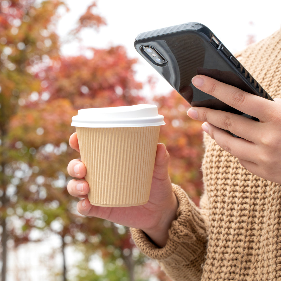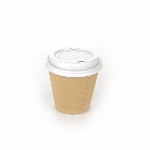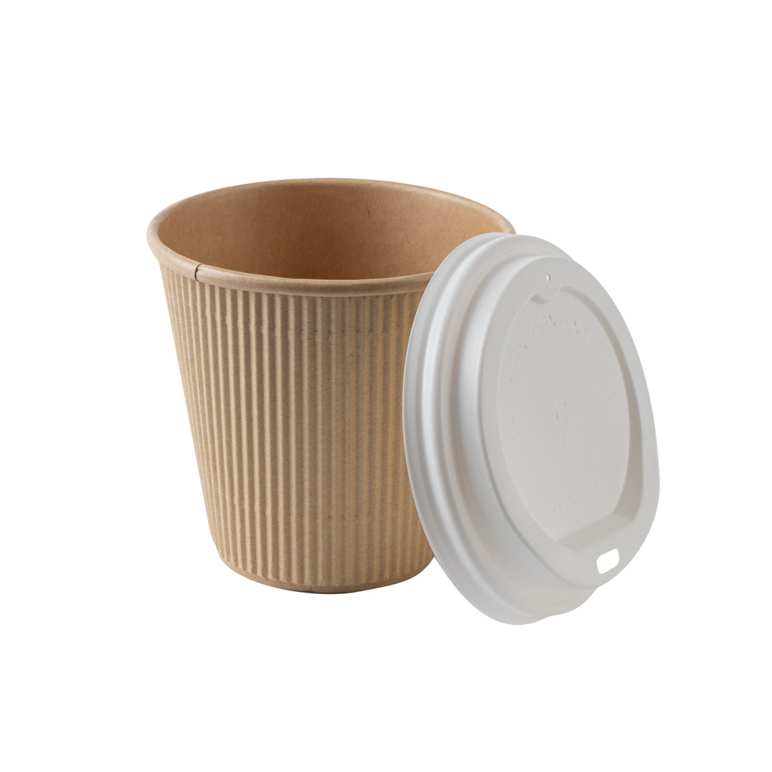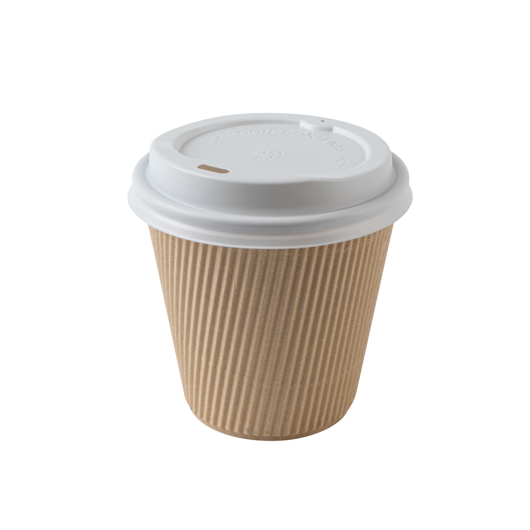 8 OZ KRAFT PAPER RIPPLE WALL COFFEE CUP - WITH WHITE LID