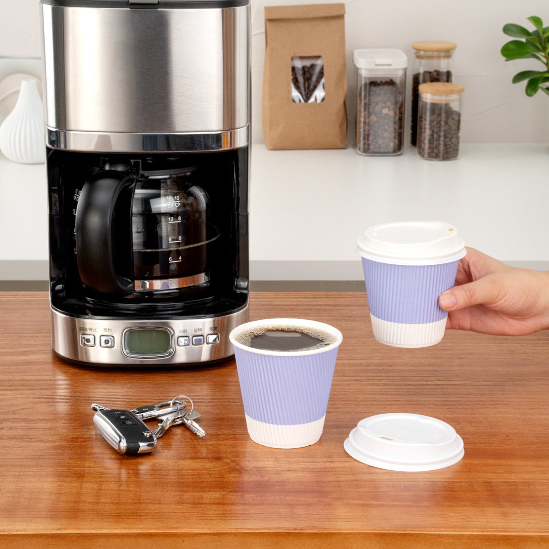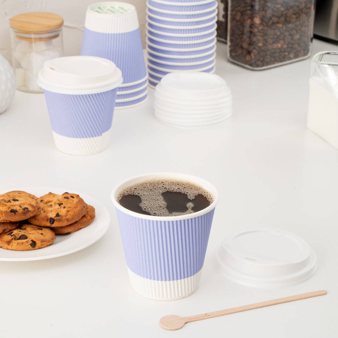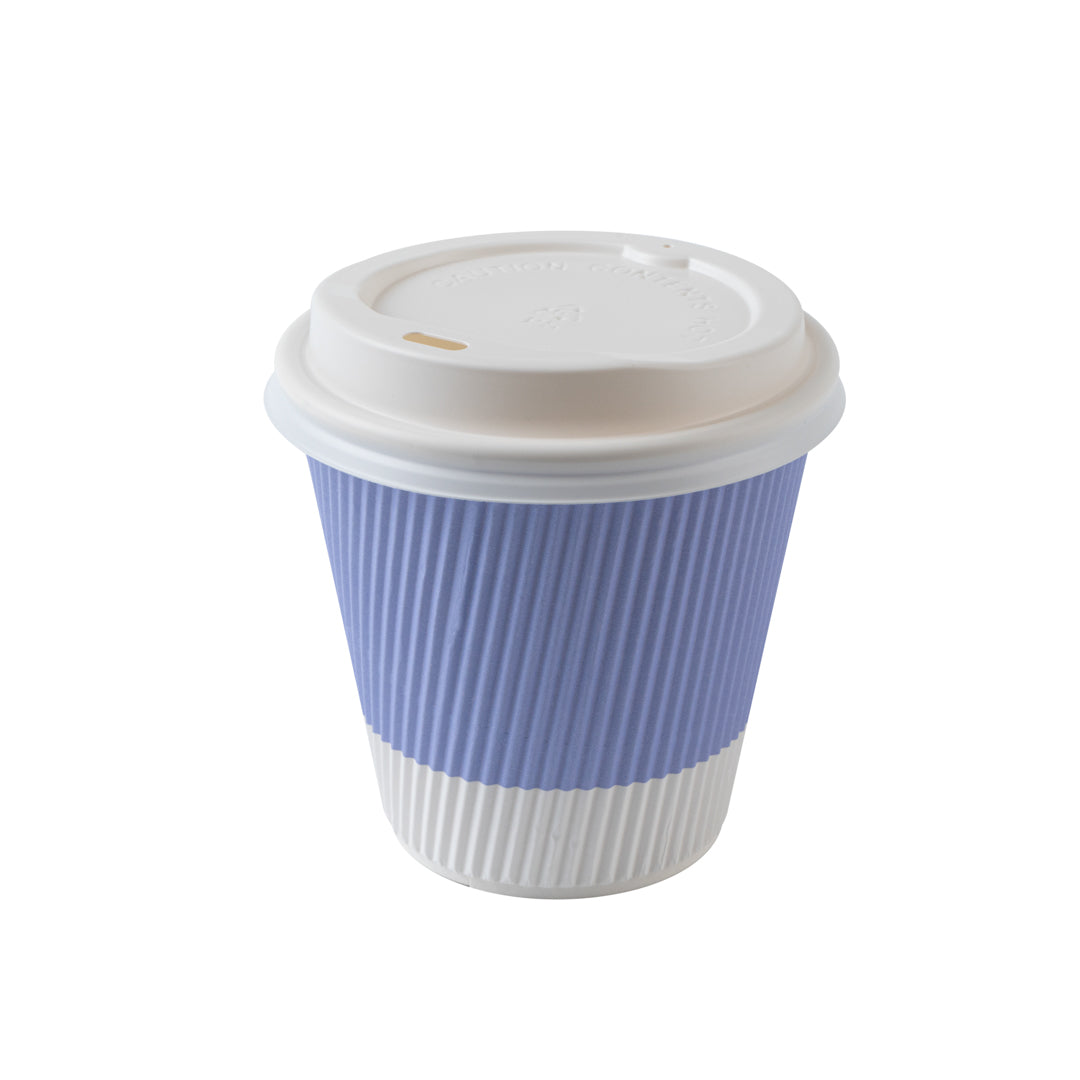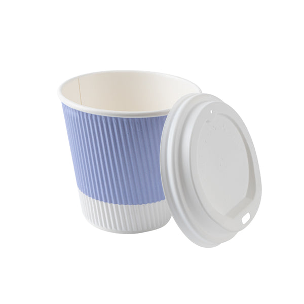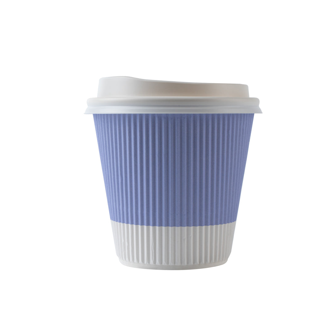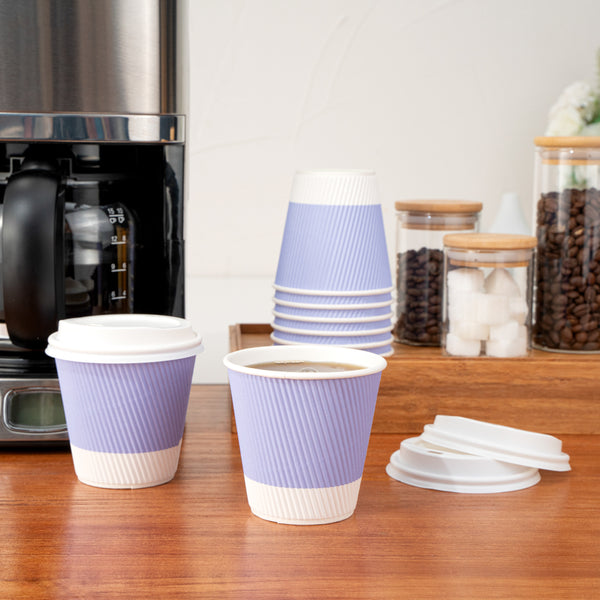 8 OZ LIGHT PURPLE PAPER RIPPLE WALL COFFEE CUP - WITH WHITE LID