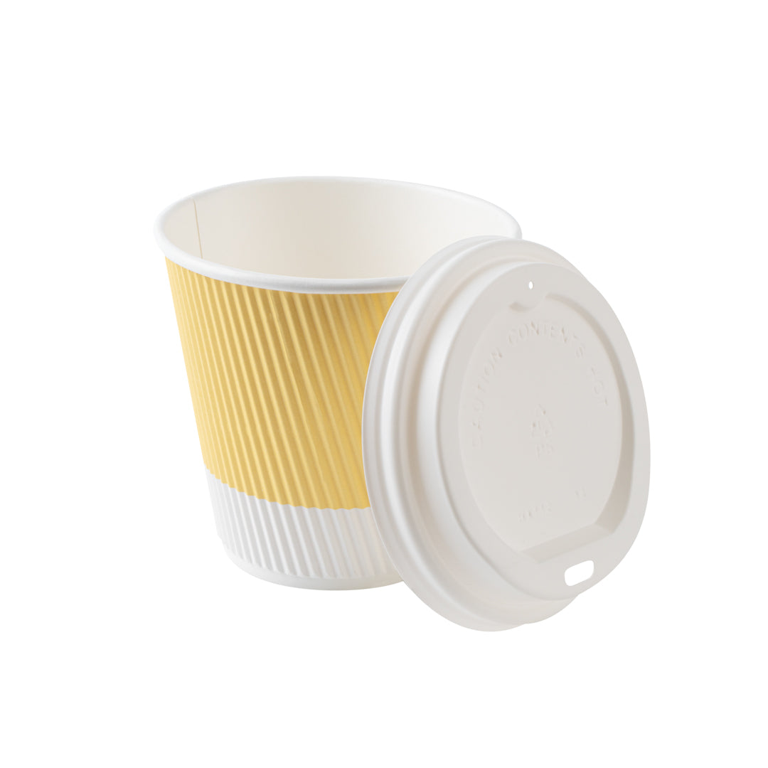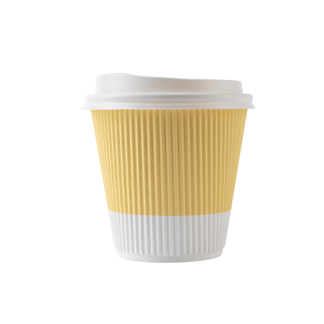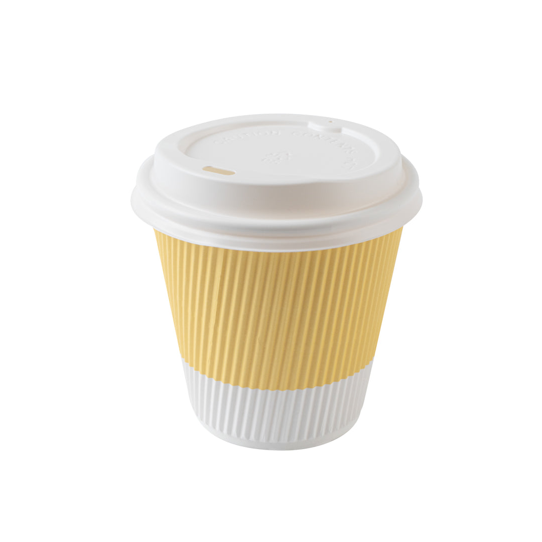 8 OZ LIGHT YELLOW PAPER RIPPLE WALL COFFEE CUP - WITH WHITE LID