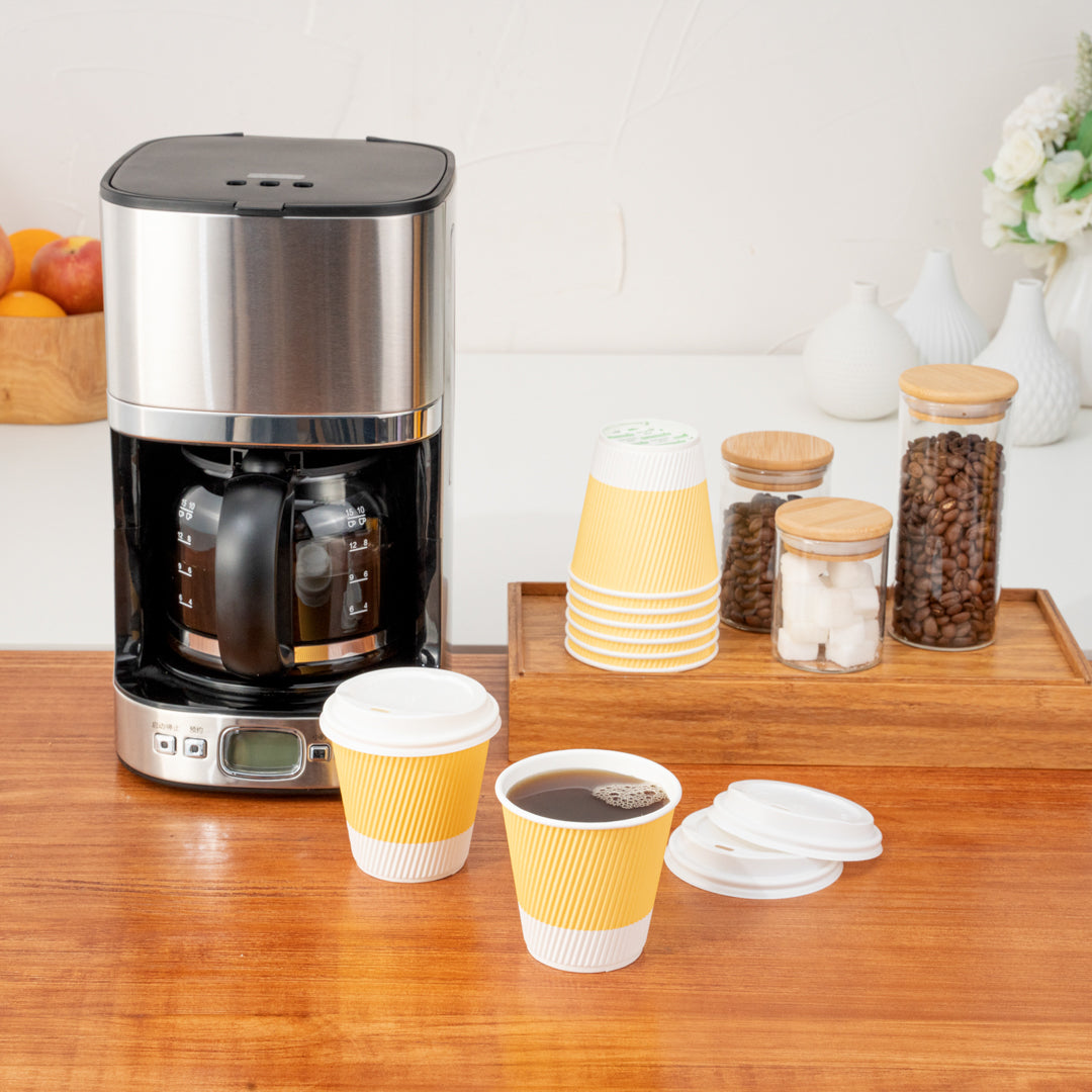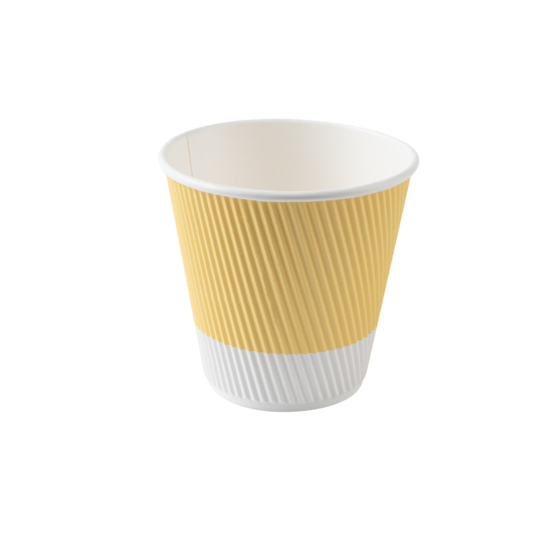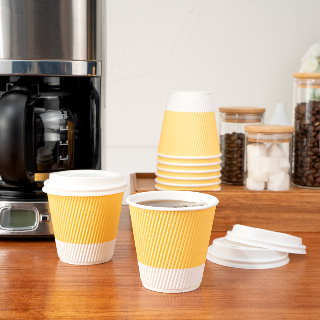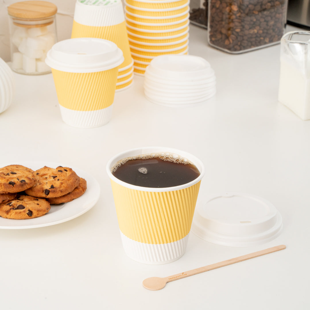 8 OZ LIGHT YELLOW PAPER RIPPLE WALL COFFEE CUP - WITH WHITE LID