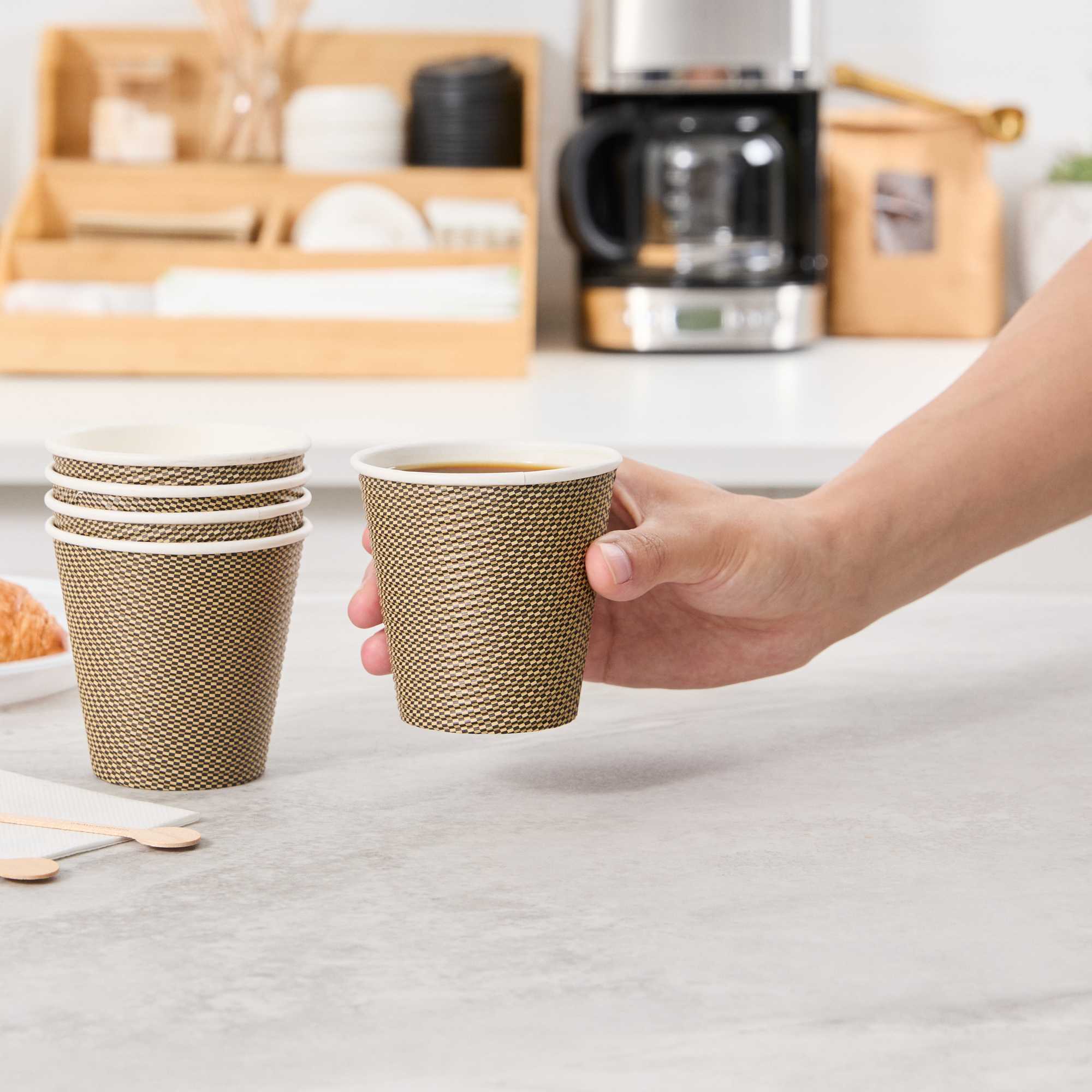 Thanks to the sturdy double-walled construction, these cups stay cool to the touch and will never burn your fingers. No costly sleeves or wasteful double cupping needed!