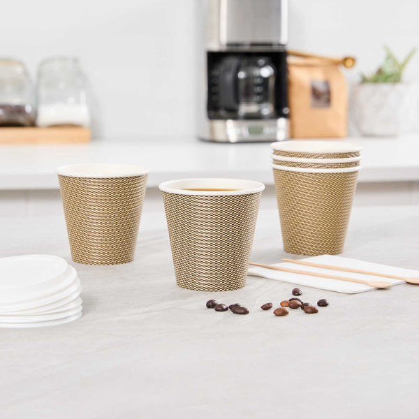8 OZ MOCHA PIN CHECK PAPER COFFEE CUP - SPIRAL WALL