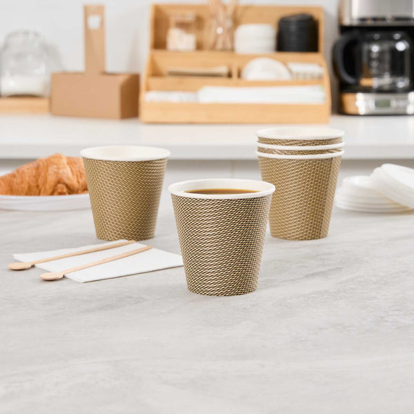 8 OZ MOCHA PIN CHECK PAPER COFFEE CUP - SPIRAL WALL