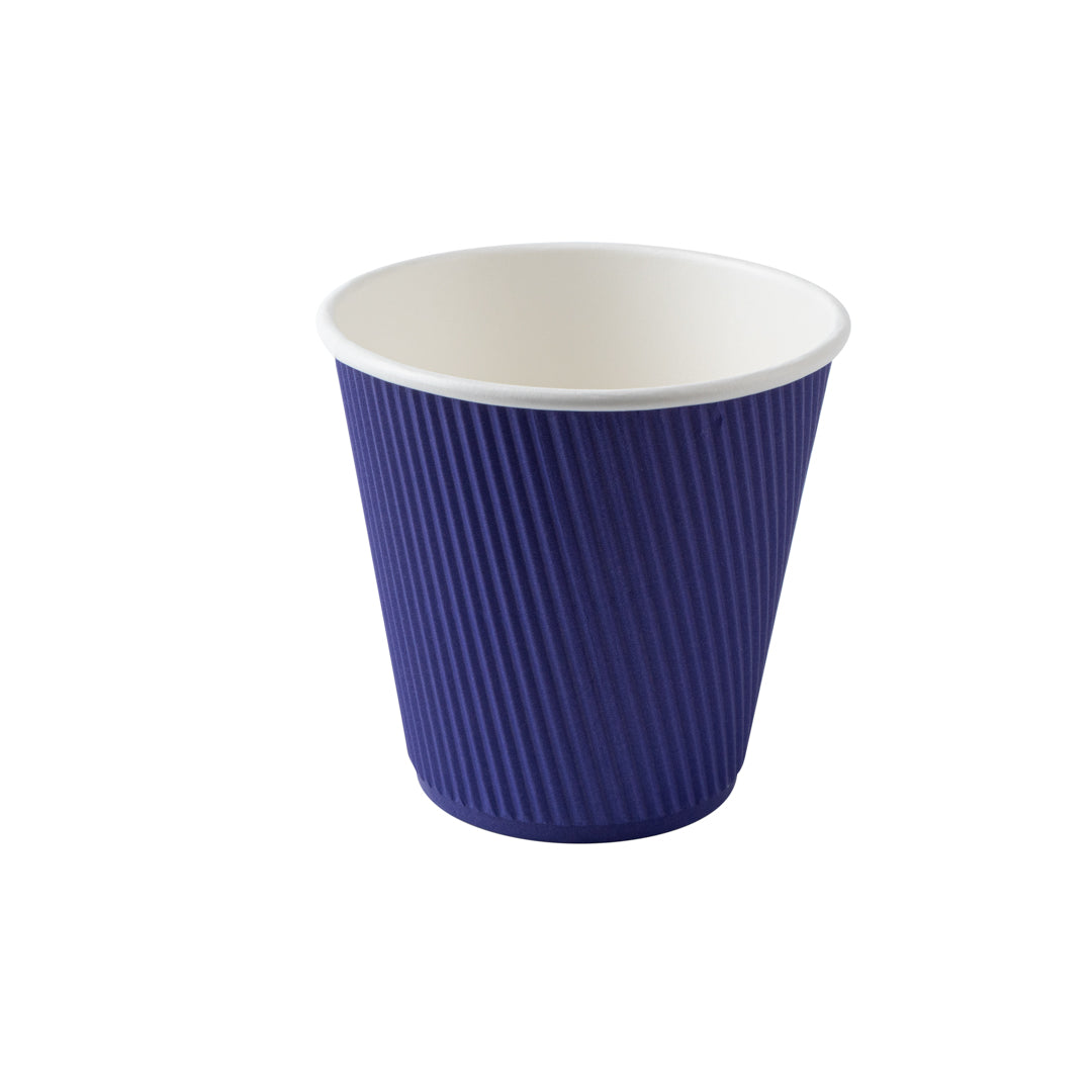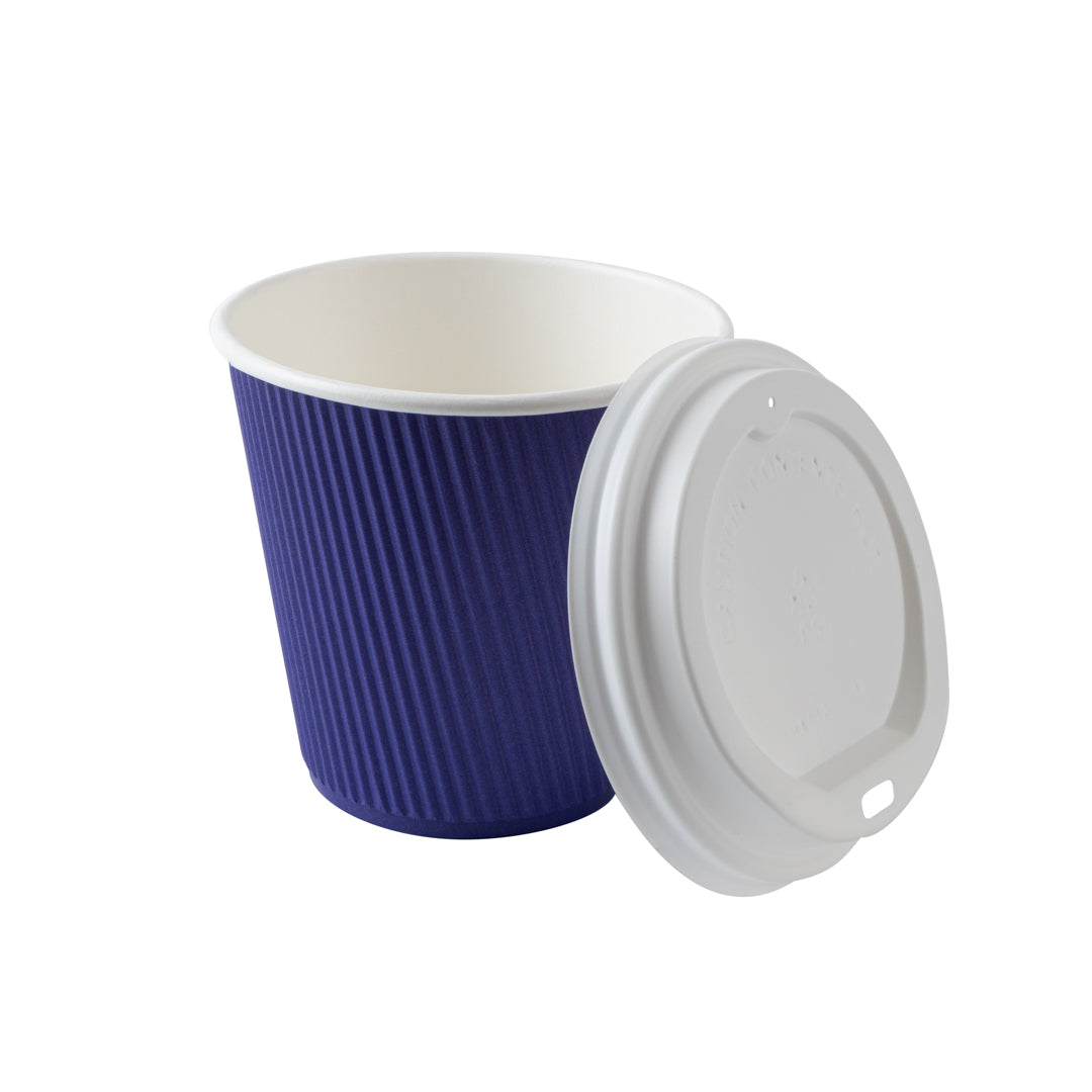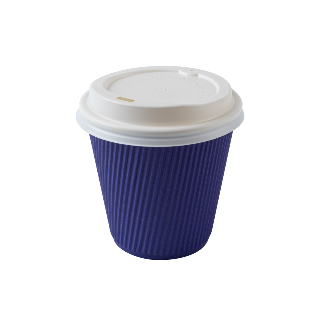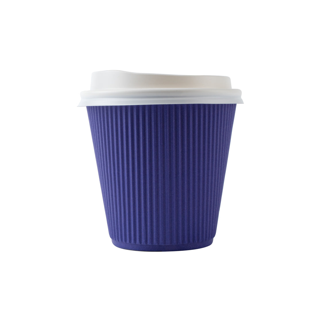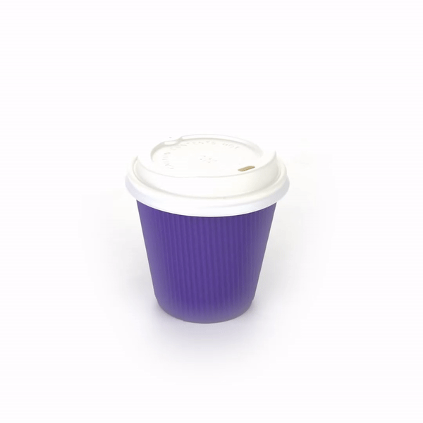 8 OZ ROYAL PURPLE PAPER RIPPLE WALL COFFEE CUP - WITH WHITE LID