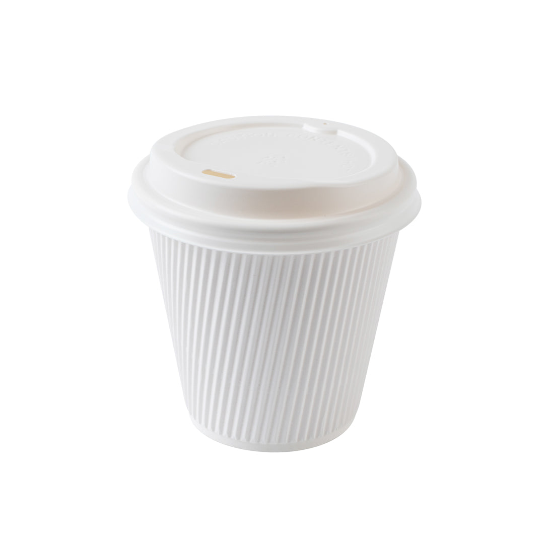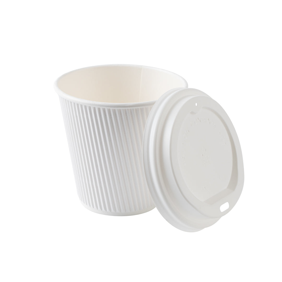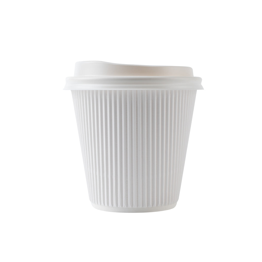 8 OZ WHITE PAPER RIPPLE WALL COFFEE CUP - WITH WHITE LID