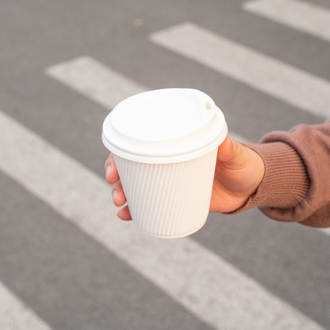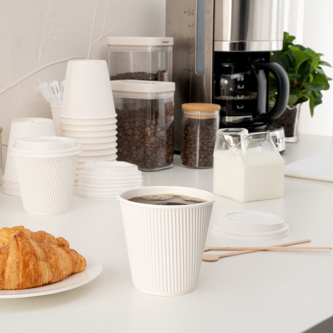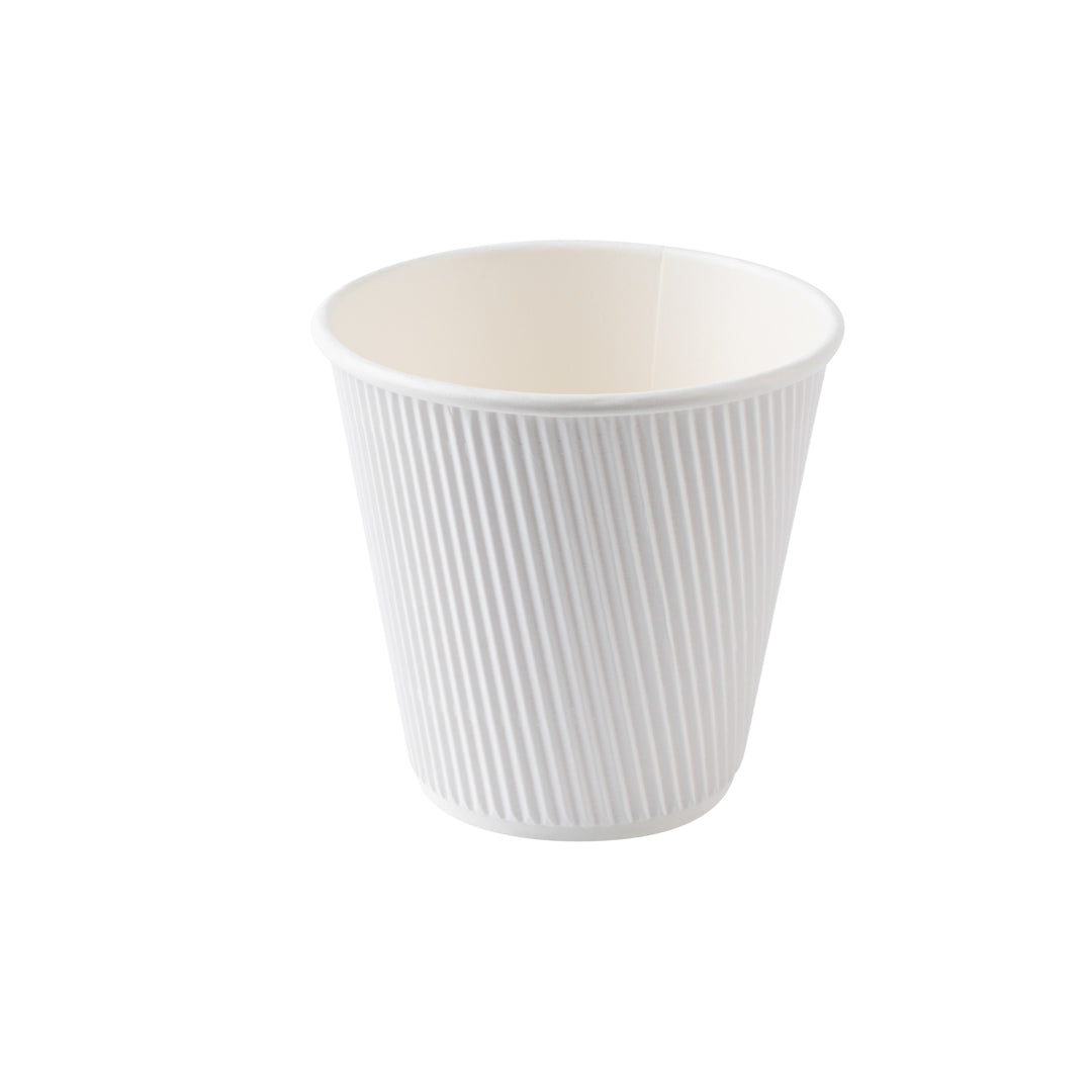 8 OZ WHITE PAPER RIPPLE WALL COFFEE CUP - WITH WHITE LID