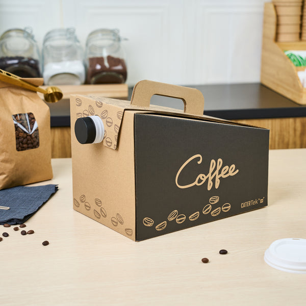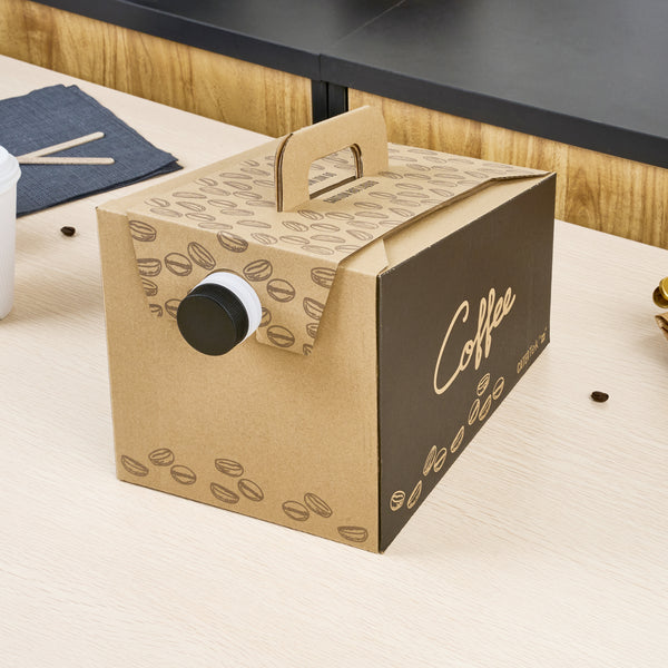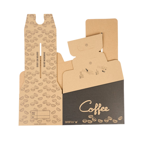 Ensure hot coffee stays spill-free during transport. The Restpresso Leak-Resistant Coffee To Go Box offers a secure design that prevents leaks, making it the perfect choice for coffee shops and catering services. With its impressive 96-ounce capacity, this catering coffee container efficiently serves up to 12 cups, ideal for large gatherings or office meetings. Made from kraft paper, it provides a sturdy beverage transportation solution. The insulated coffee carrier features a built-in handle for easy carrying and a leak-resistant screw cap to eliminate spills, allowing you to provide reliable service to your clients. The heat-friendly structure ensures hot beverages remain at optimal temperature. Enhance your service and streamline operations with this indispensable insulated coffee carrier. Each order includes 10 Restpresso Leak-Resistant Coffee To Go Boxes.