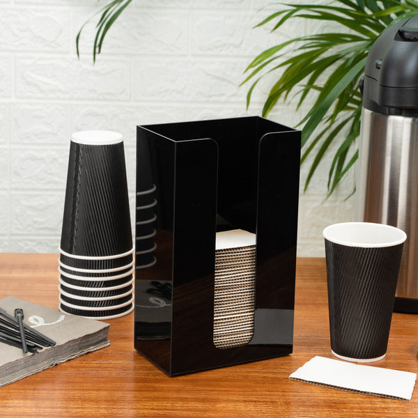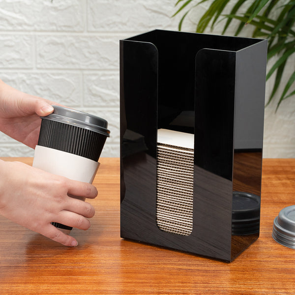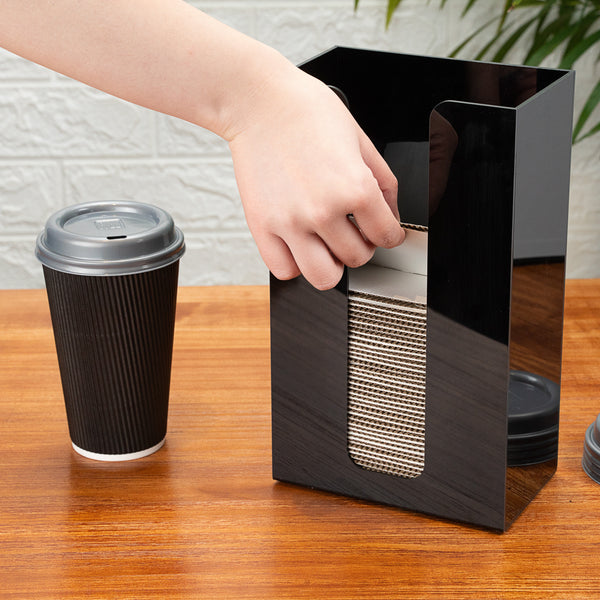 BLACK ACRYLIC VERTICAL COFFEE CUP SLEEVE DISPENSER