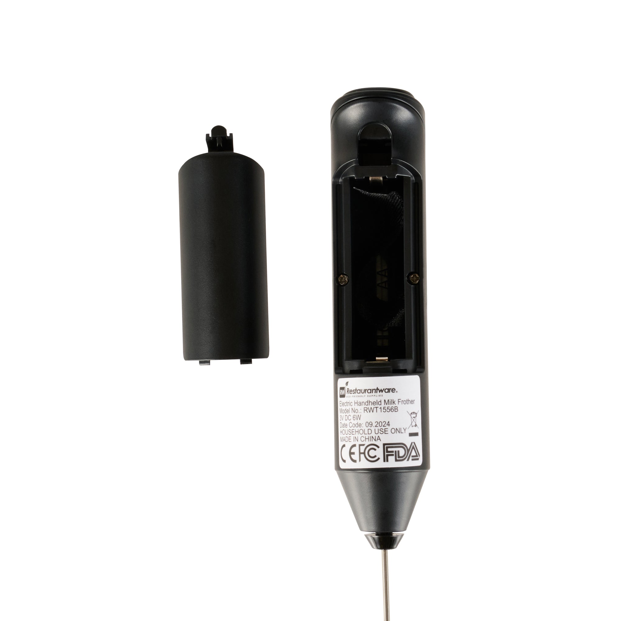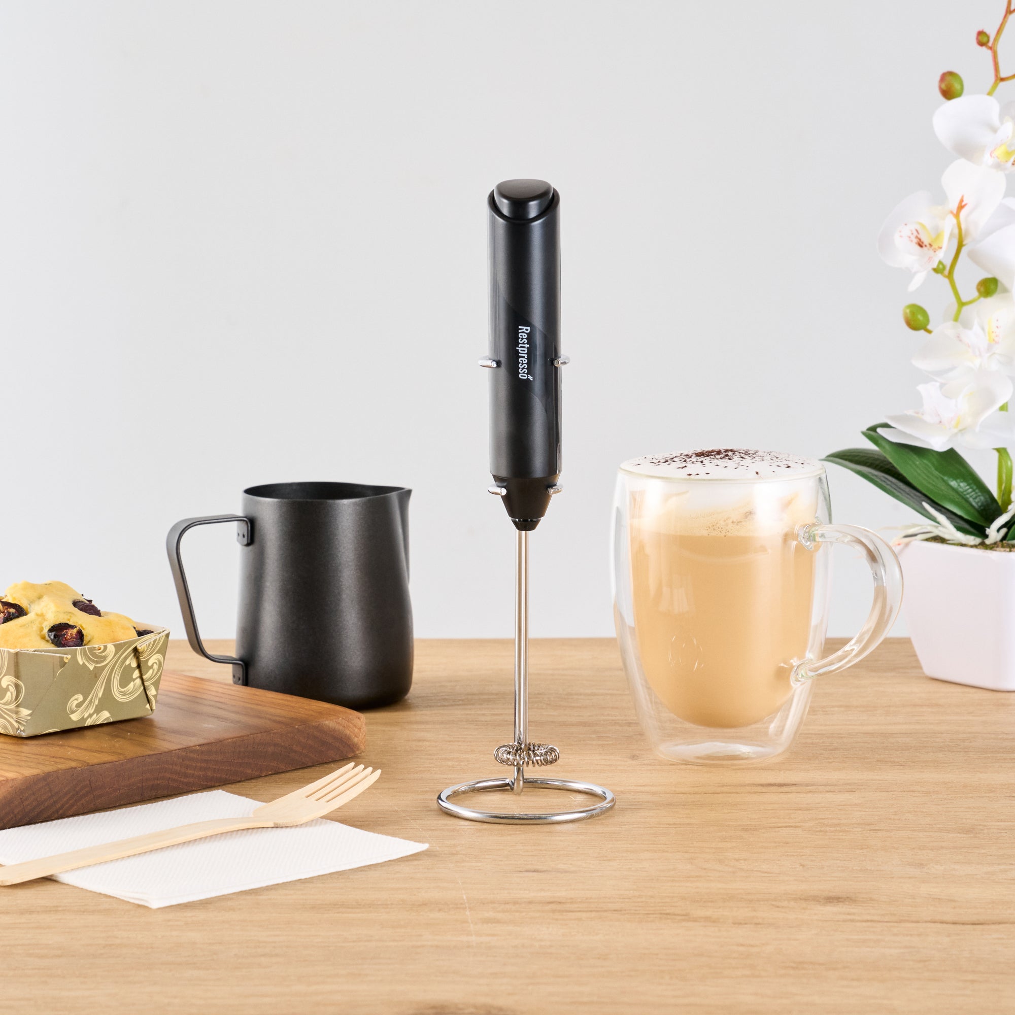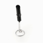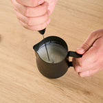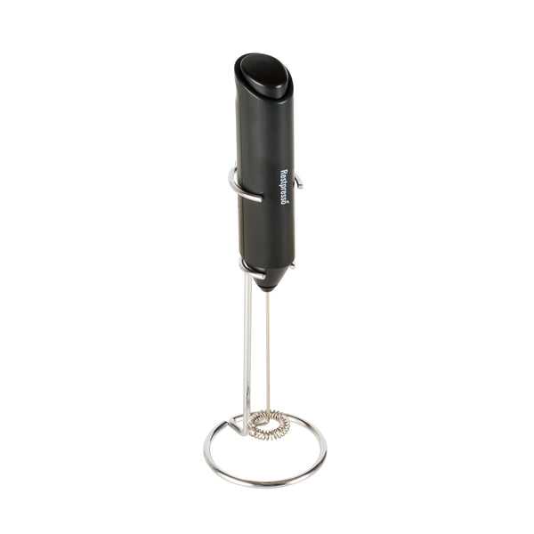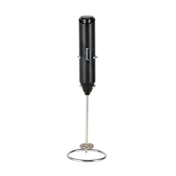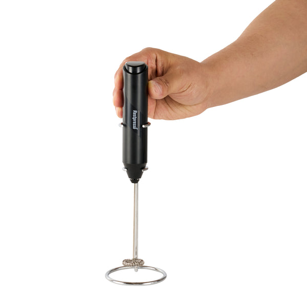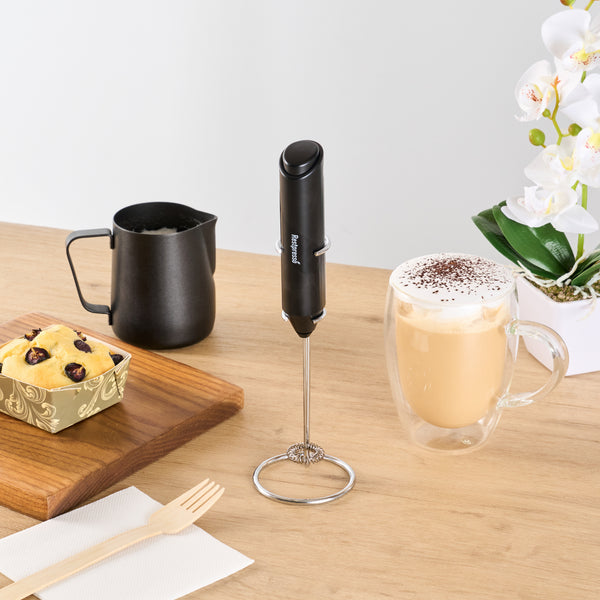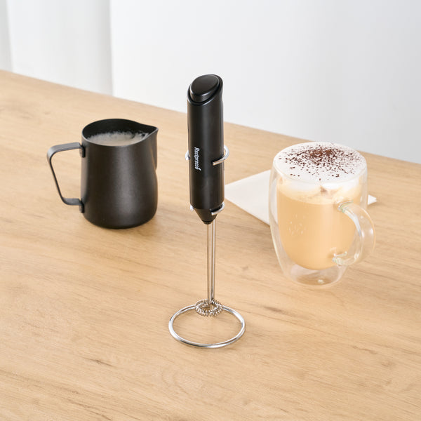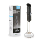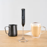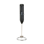 BLACK ELECTRIC HANDHELD MILK FROTHER - BATTERY-OPERATED, WITH STAND
