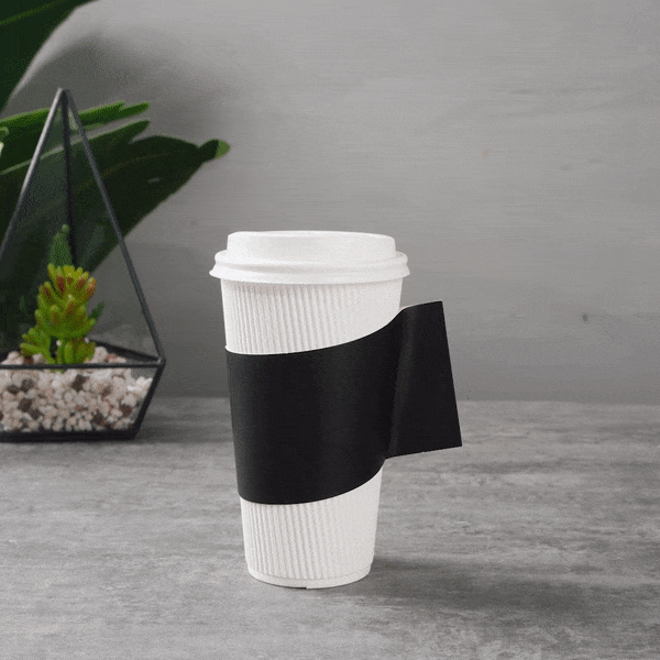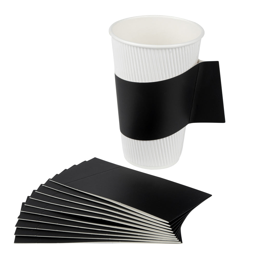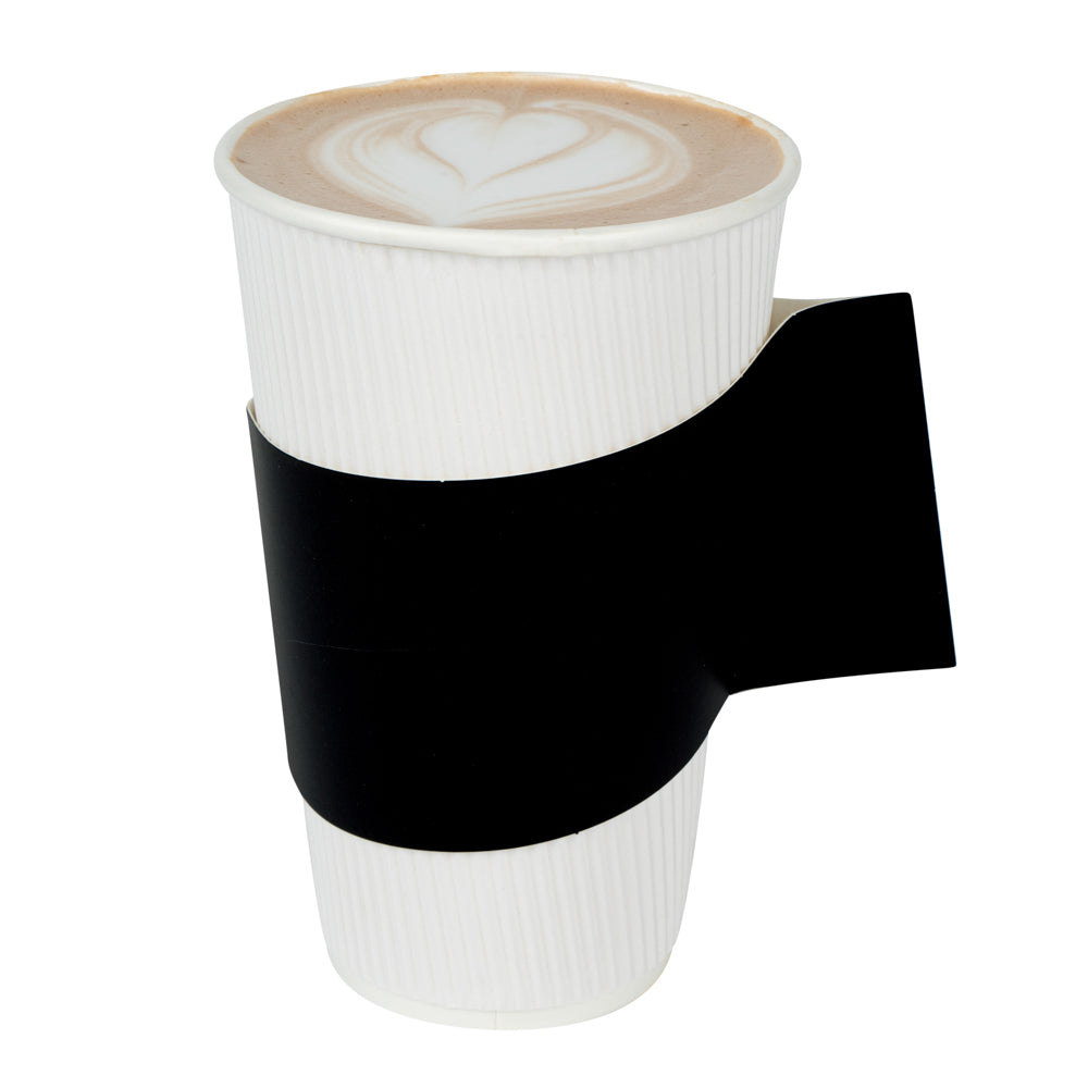 BLACK PAPER COFFEE CUP SLEEVE - WITH HANDLE, FITS 12 / 16 / 20 OZ CUPS