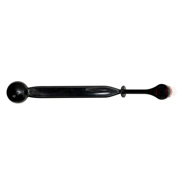 Ensure thorough cleaning with this versatile espresso machine cleaning brush. The Restpresso Black Plastic Cleaning Brush and Spoon offers a dual-purpose design with stiff bristles and a built-in spoon, facilitating efficient maintenance of espresso machines to guarantee optimal performance. Its ergonomic handle provides a comfortable grip, reducing hand fatigue during prolonged use, making it an essential barista cleaning tool. Crafted from durable black plastic, this brush is resistant to wear and perfectly suited for daily use in bustling coffee shops. The compact dimensions of 8.75 inches by 1.25 inches allow for easy storage and accessibility, fitting conveniently in utensil drawers or toolkits. The black color effectively hides stains, maintaining a cleaner appearance, while the long design is ideal for serving sauces or condiments, enhancing its functionality as an espresso maintenance brush. Sold in a 1 count box.