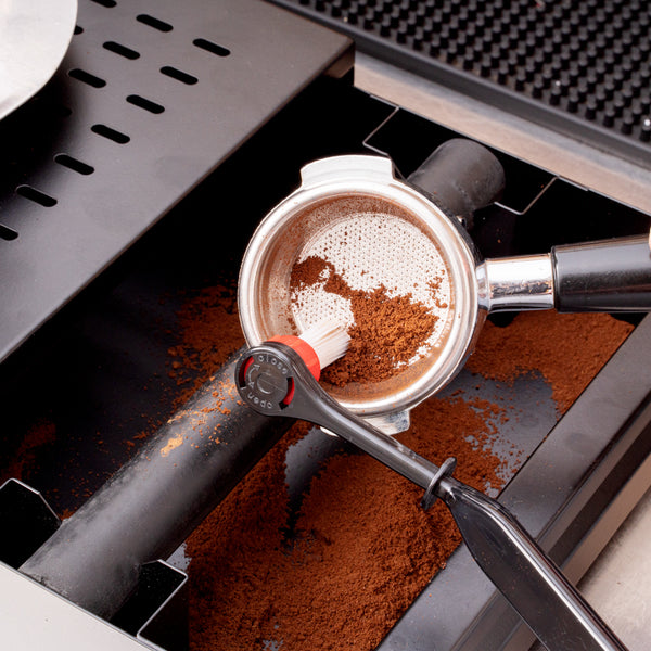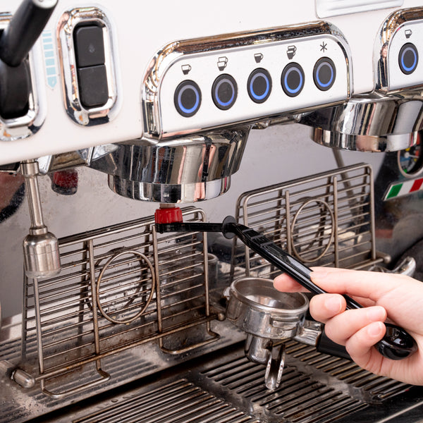 BLACK PLASTIC CLEANING BRUSH AND SPOON - FOR ESPRESSO MACHINES