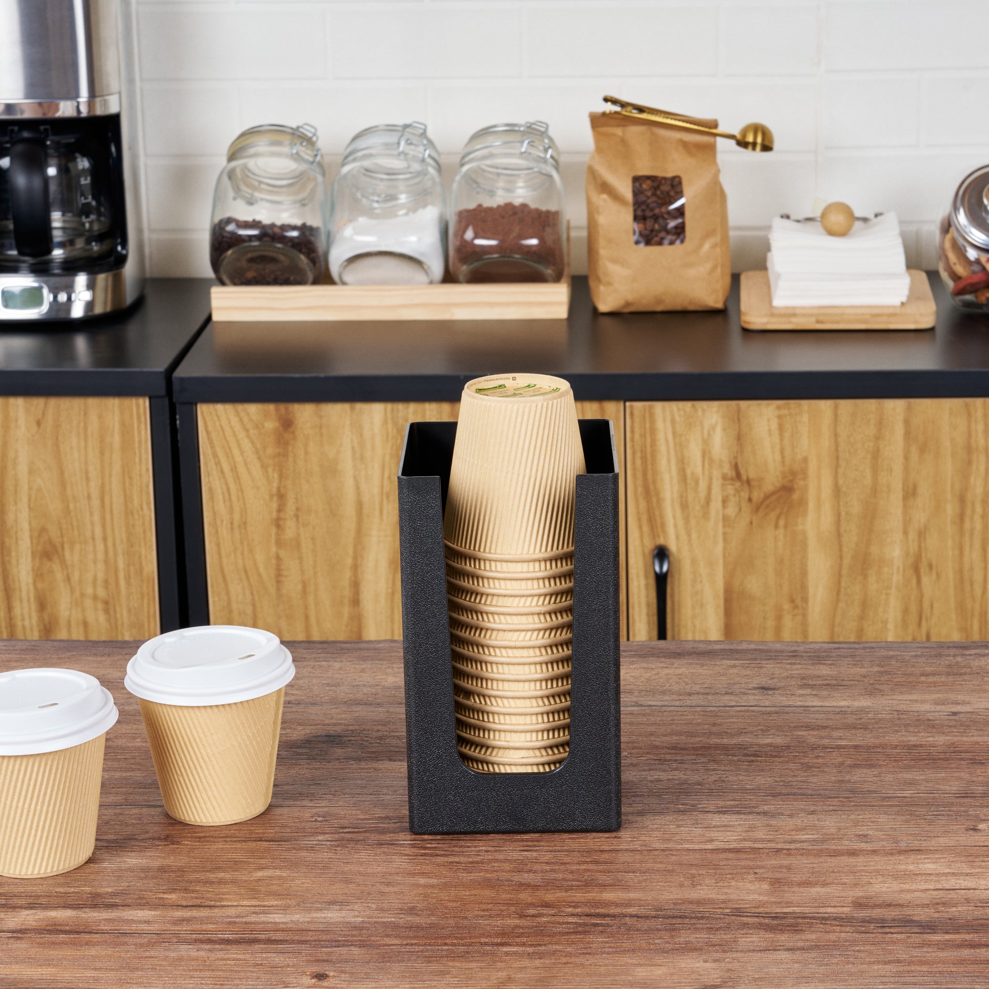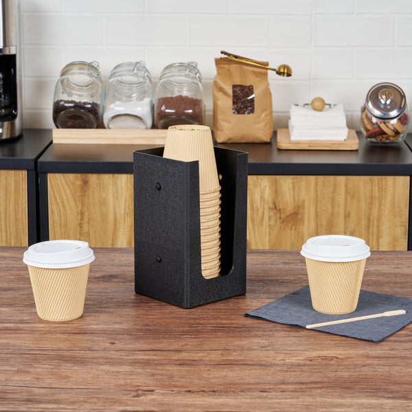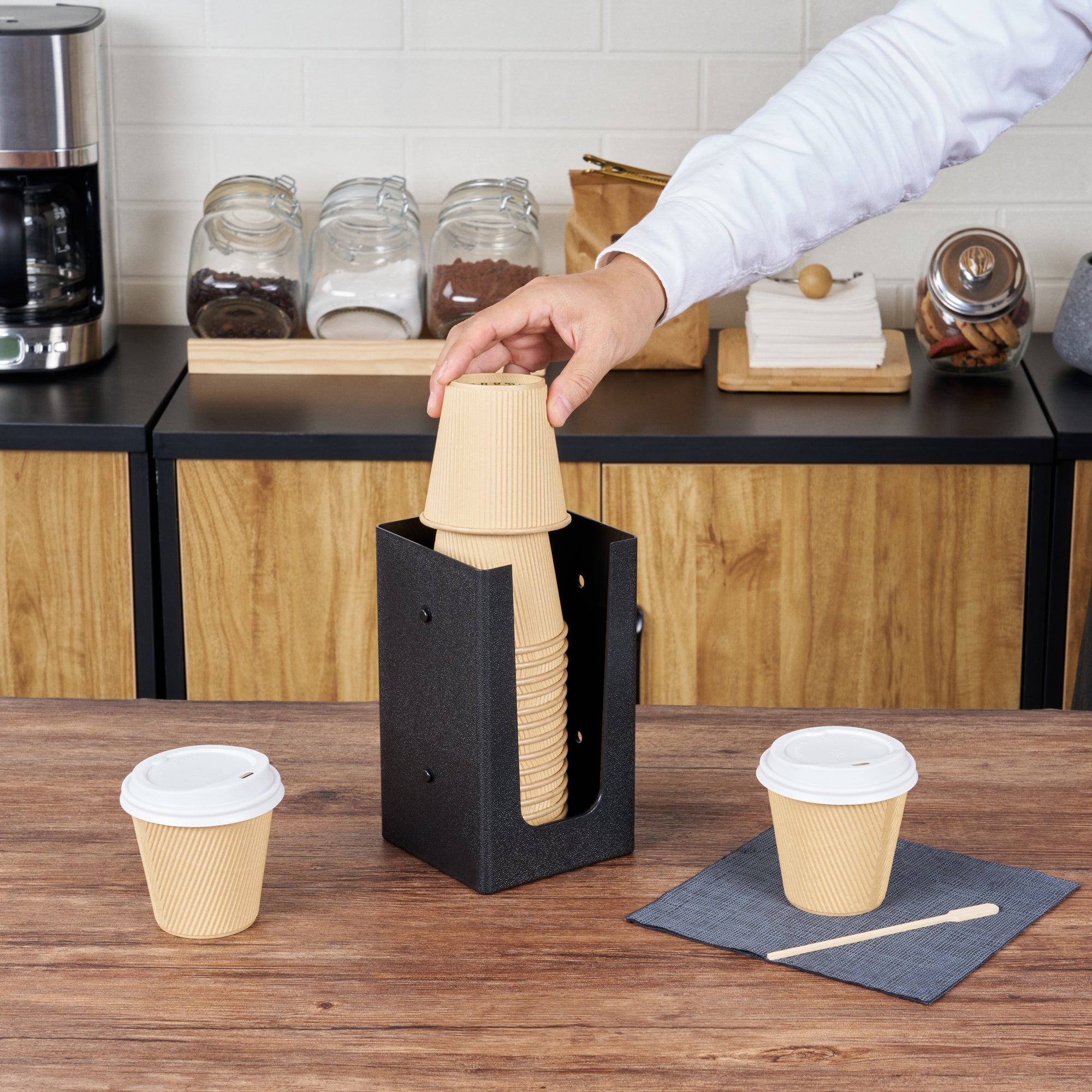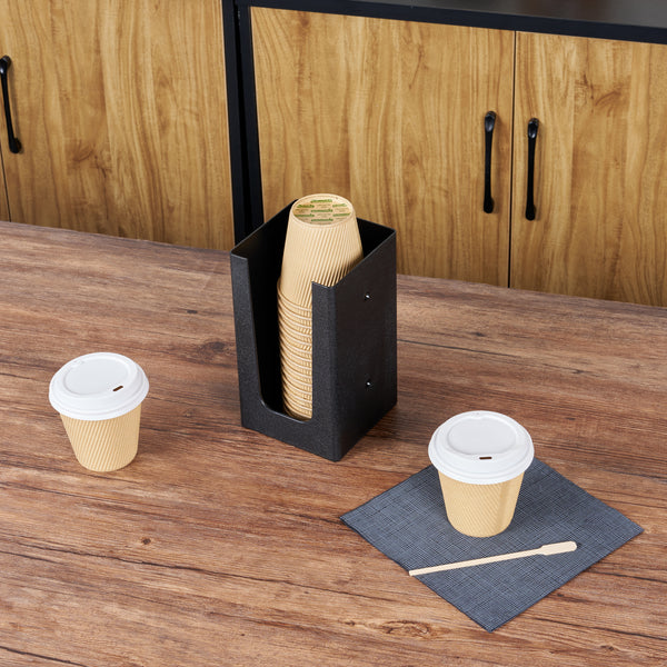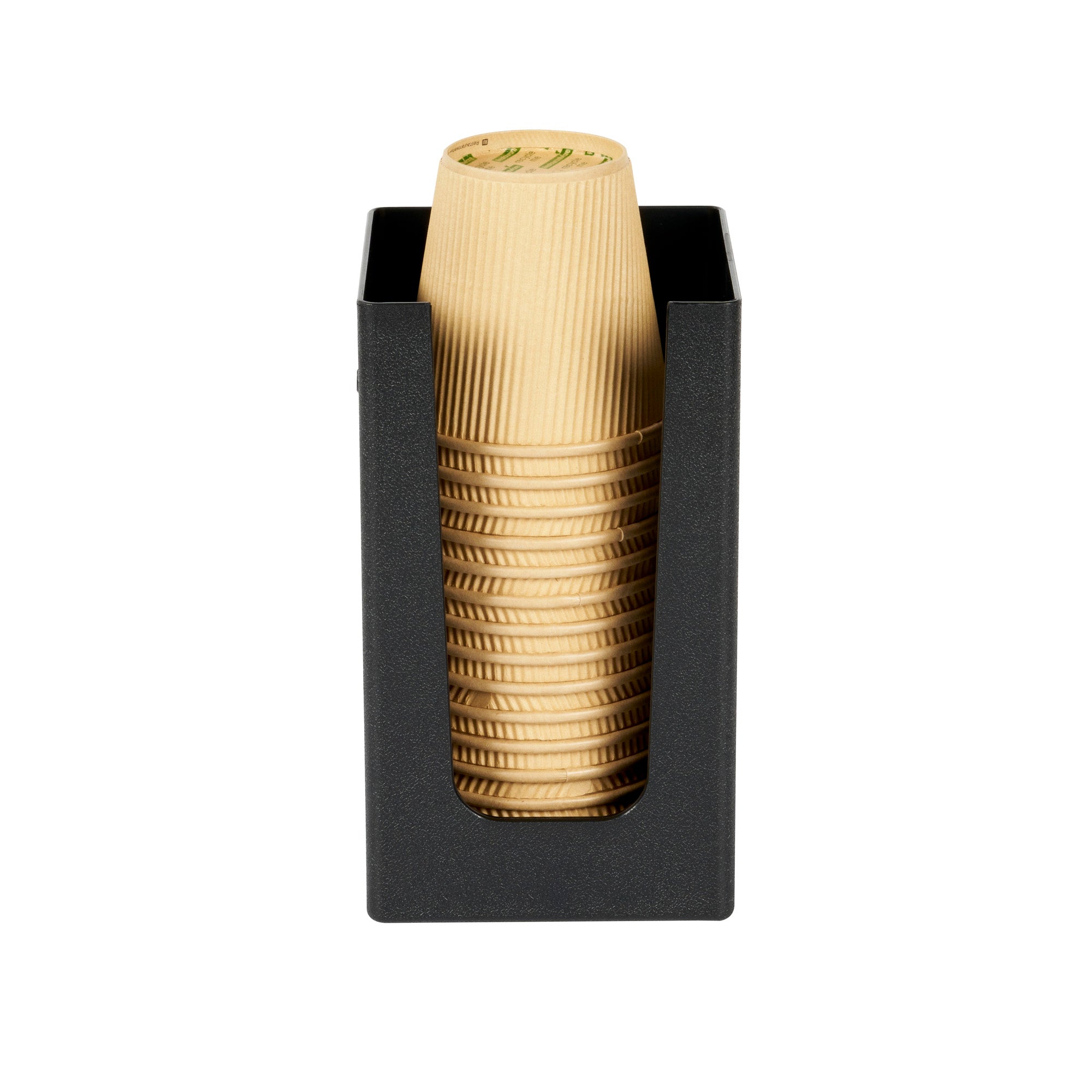 Elevate the efficiency of your coffee station with our Restpresso Black Plastic Coffee Cup / Lid / Cocktail Napkin Organizer. This coffee organizer is perfect for keeping lids, coffee cups, or cocktail napkins neatly arranged and easily accessible. The open design of this plastic organizer lets staff easily monitor supply levels at a glance, ensuring you do not run out of beverage supplies during peak hours. Crafted from premium plastic, this coffee caddy is designed for long-lasting use, providing reliable storage for your beverage supplies. With a compact design, this countertop organizer fits seamlessly into any space, maximizing efficiency without taking up too much room. The black finish of this organizer adds a touch of sophistication while complementing any coffee station setup. Measuring 4.53 inches in length by 4.53 inches in width by 7.87 inches in height, this black organizer is both space-efficient and practical. Sold in a 1 count box.