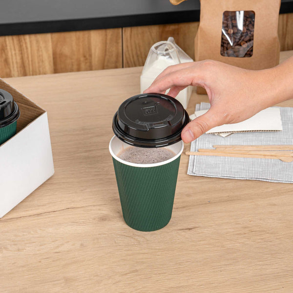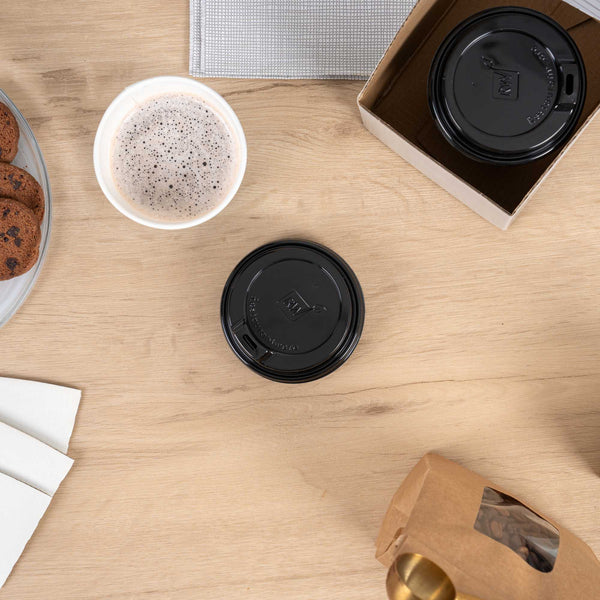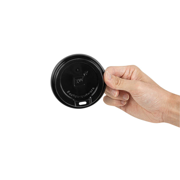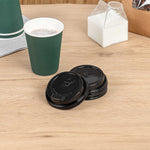 BLACK PLASTIC COFFEE CUP LID - FITS 8, 12, 16 AND 20 OZ