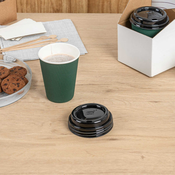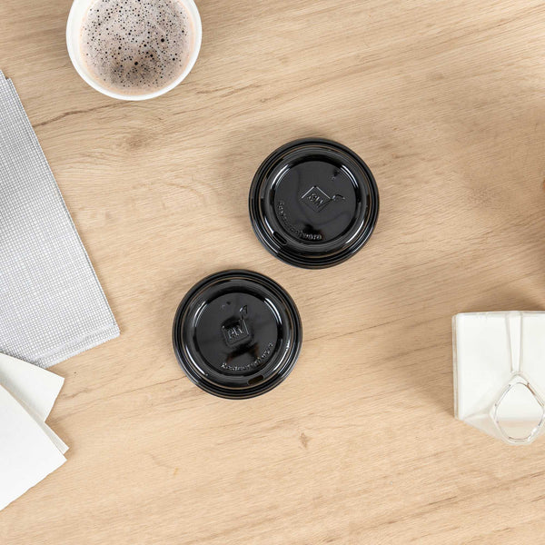 BLACK PLASTIC COFFEE CUP LID - FITS 8, 12, 16 AND 20 OZ