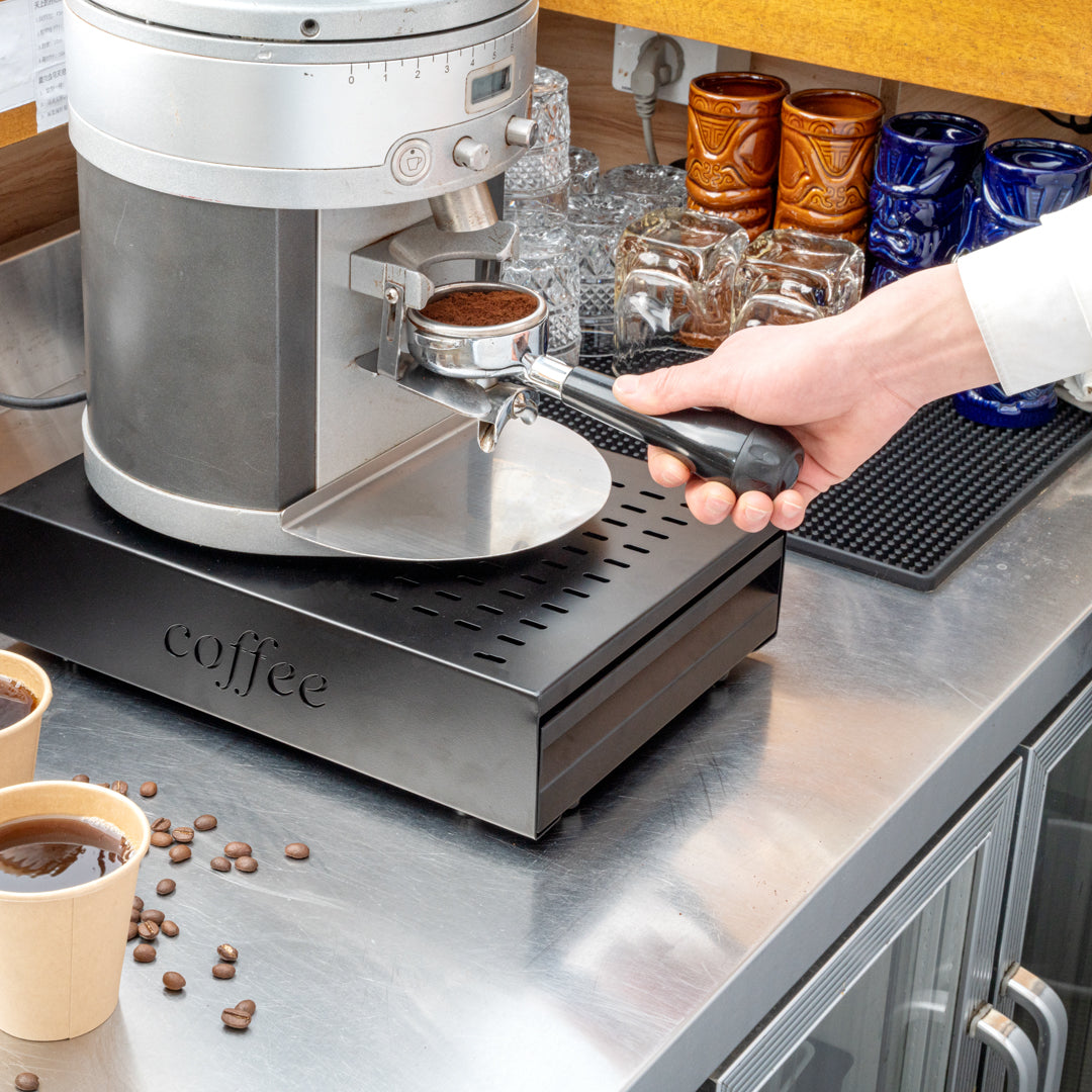 This knock box drawer features a vented design that increases airflow to reduce condensation and mold. Plus, it allows you to easily sweep leftover grinds on the grinder or knock box into the drawer without needing to slide it open.
