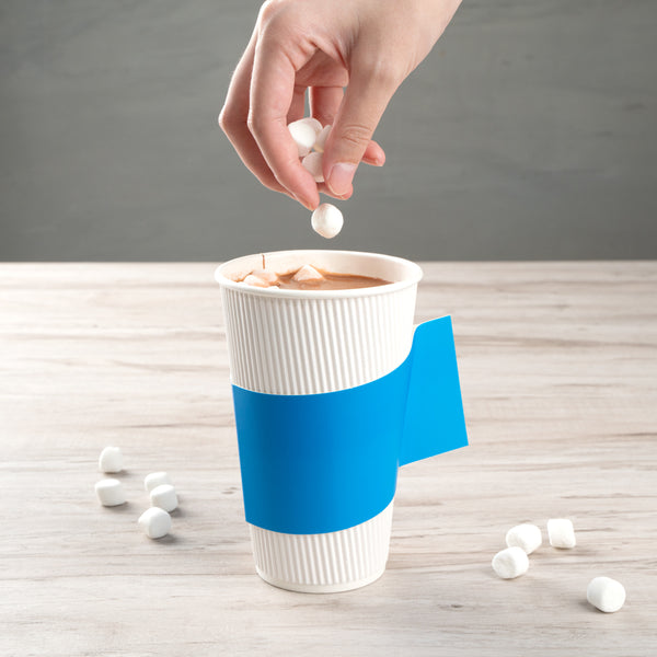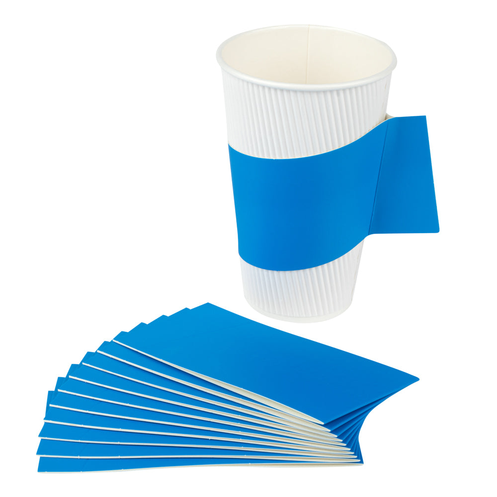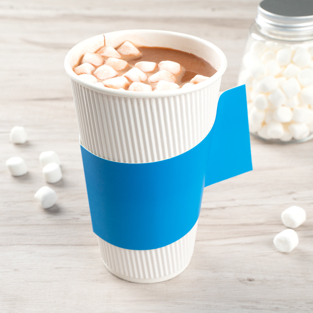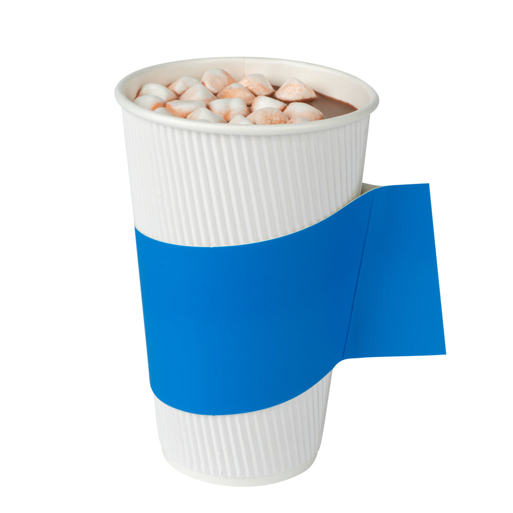 BLUE PAPER COFFEE CUP SLEEVE - WITH HANDLE, FITS 12 / 16 / 20 OZ CUPS