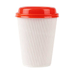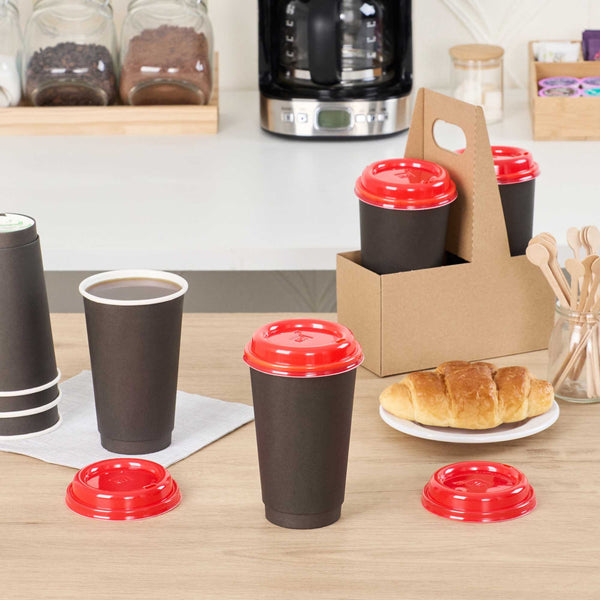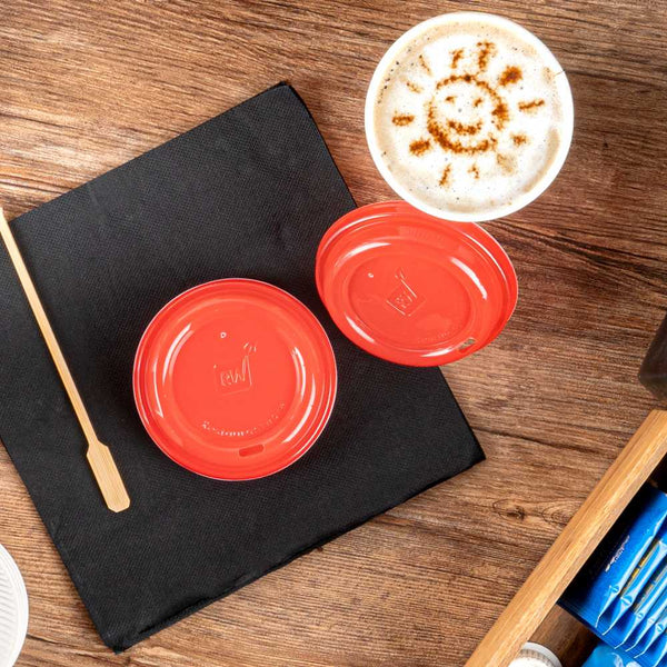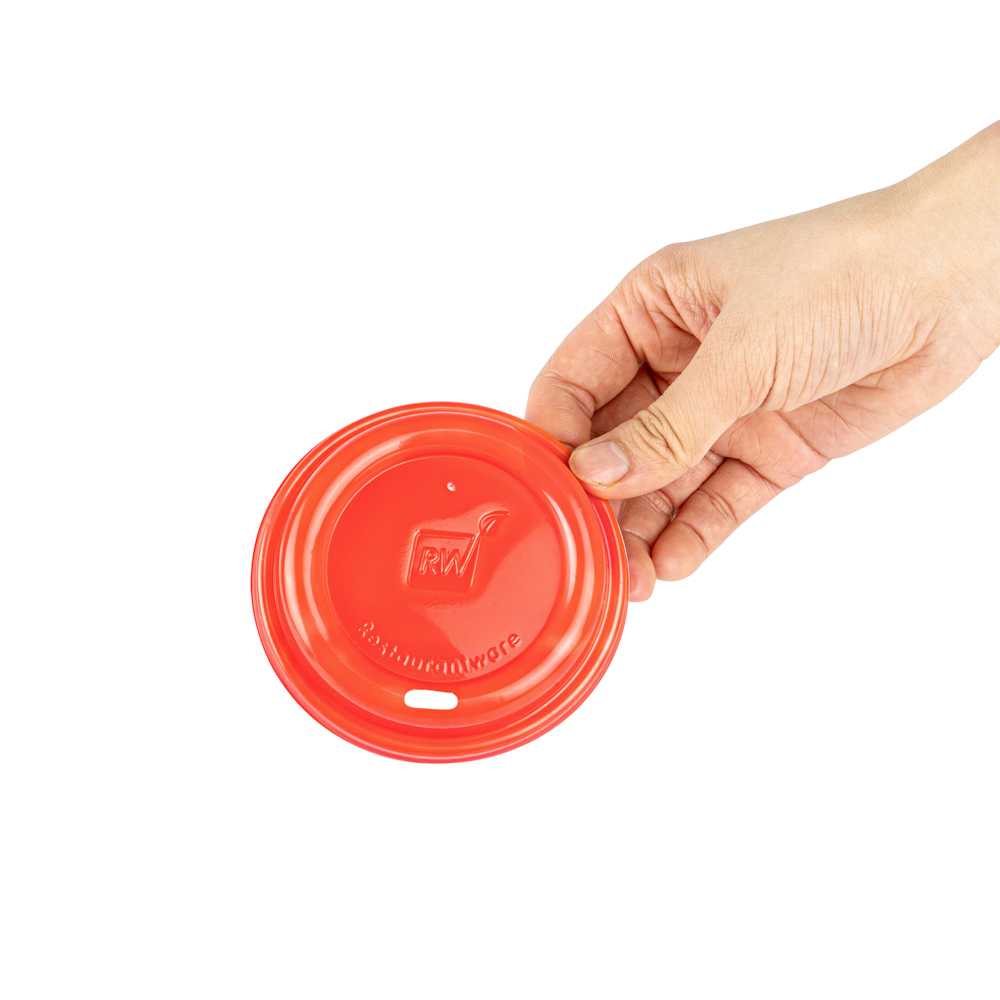Elevate your coffee experience with our Restpresso Glossy Red Plastic Coffee Cup Lids. Made from premium plastic, these coffee cup lids are built to last, ensuring durability when sipping on hot or cold drinks. These disposable coffee lids are compatible with our 8-ounce, 12-Ounce, 16-Ounce, and 20-Ounce paper cups (SKUs: RWA1129K, RWA0275K, RWA0276W, RWA0779R), guaranteeing fewer spills and leaks during hurried mornings or on-the-go rush, keeping beverages secure and attire spotless. Equipped with an elevated spout, these lids for cups offer the added advantage of a smooth and controlled pour. These plastic hot lids boast a ventilated design that enables an even cooling process for hot beverages. The vibrant red finish of these plastic lids adds a touch of flair, infusing a modern twist to coffee service while upholding exceptional functionality. To reduce cleanup efforts, these glossy red plastic lids can be tossed after use. Measuring 3.5 inches in diameter and 0.75 inches in height, these lids fit most standard-sized coffee cups. Sold in a 500 count box. Coffee cups and lids are sold separately.