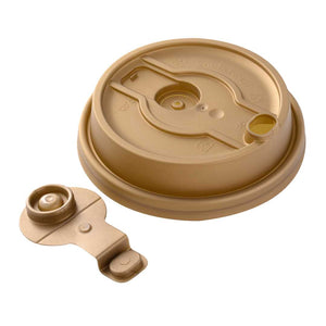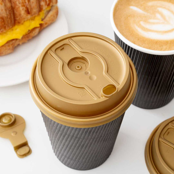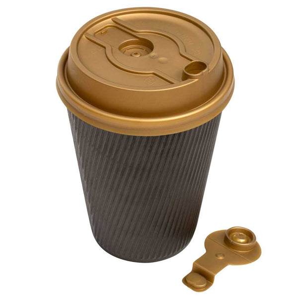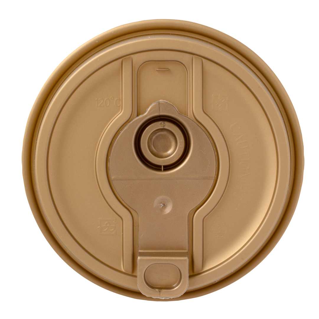 GOLD PLASTIC 2-IN-1 COFFEE CUP LID - WITH PLUG, FITS 8, 12, 16, 20 OZ