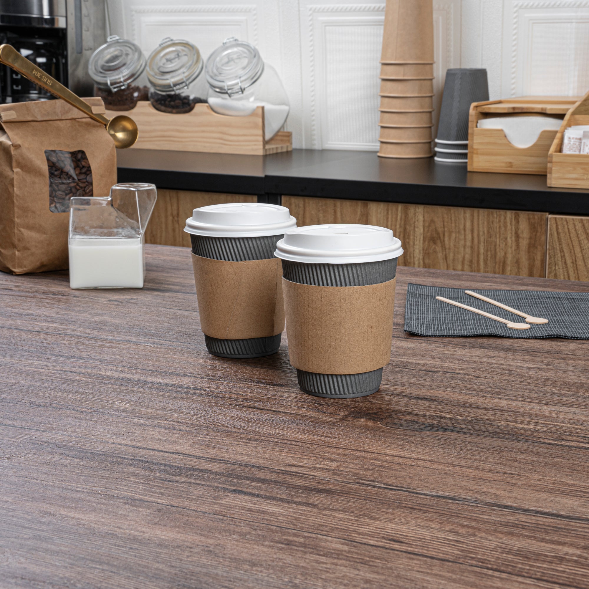 With a versatile build, these hot cup sleeves fit 12-, 16-, and 20-ounce cups. Pair these hot beverage sleeves with our collection of coordinating coffee cups.
