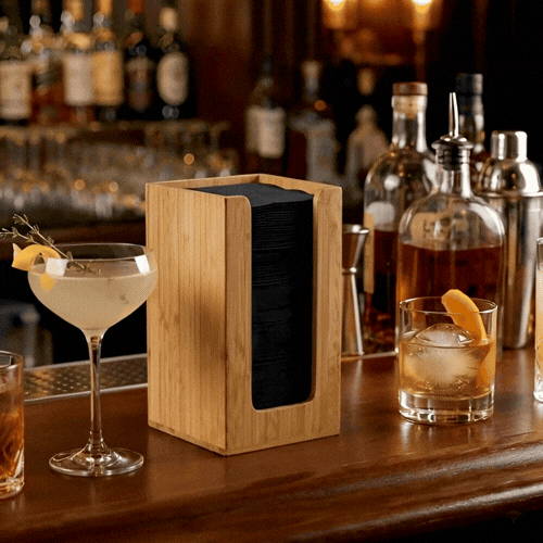 NATURAL BAMBOO COFFEE CUP / LID / COCKTAIL NAPKIN ORGANIZER