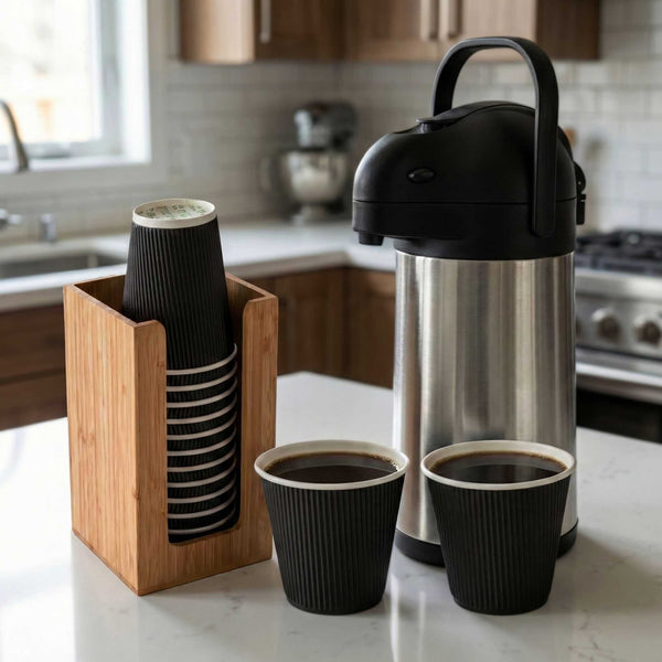 Maximize your coffee station efficiency with a stylish bamboo cup organizer. The Restpresso Multipurpose Bamboo Cup Organizer provides a durable solution with its bamboo construction, perfect for organizing coffee service items. Its compact dimensions of 4.5 inches by 4.5 inches by 8 inches allow it to fit neatly on countertops, making it an ideal coffee station organizer for small spaces. The square base offers stability, ensuring that your stacked items remain secure, particularly in busy café settings. This countertop bamboo organizer features a versatile design that facilitates the neat storage of coffee cups, lids, and cocktail napkins, enhancing ease of access. The sleek brown color seamlessly complements rustic or natural themes, adding a touch of elegance to any setting. Experience the convenience and aesthetic appeal of this organizer today. Each order includes 1 Restpresso Multipurpose Bamboo Cup Organizer.