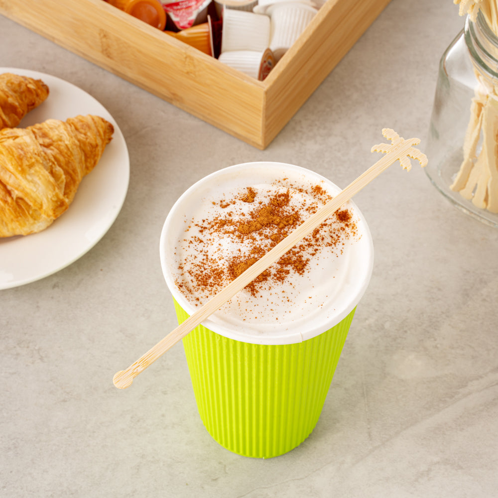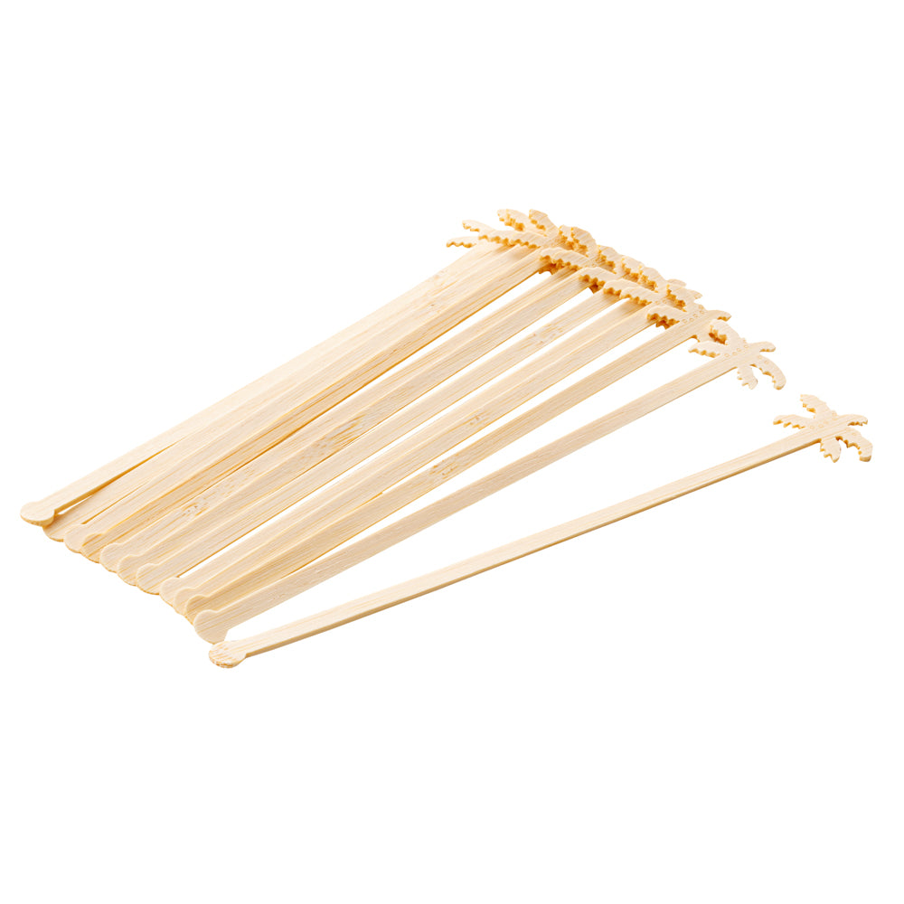 Enhance service with our Restpresso Bamboo Palm Tree Cocktail Stirrers. These sustainable bamboo stirrers, measuring 6.89 inches in length, offer a biodegradable option for mixing drinks, promoting sustainable responsibility in your establishment. The palm tree design not only adds a tropical flair to your beverages but also provides a comfortable and stylish way to stir, making them ideal for tiki bars and themed events. With a smooth finish, these drink stirrers guarantee a splinter-free experience, enhancing safety and comfort for your patrons. Perfect for both cold and hot beverages, they suit a wide range of foodservice settings, from cafés to office break rooms, ensuring versatility and convenience. Choose these biodegradable stirrers to simplify cleanup and reduce waste, aligning with your sustainability goals. Each order includes 100 Restpresso Biodegradable 6.89" Bamboo Stirrers.