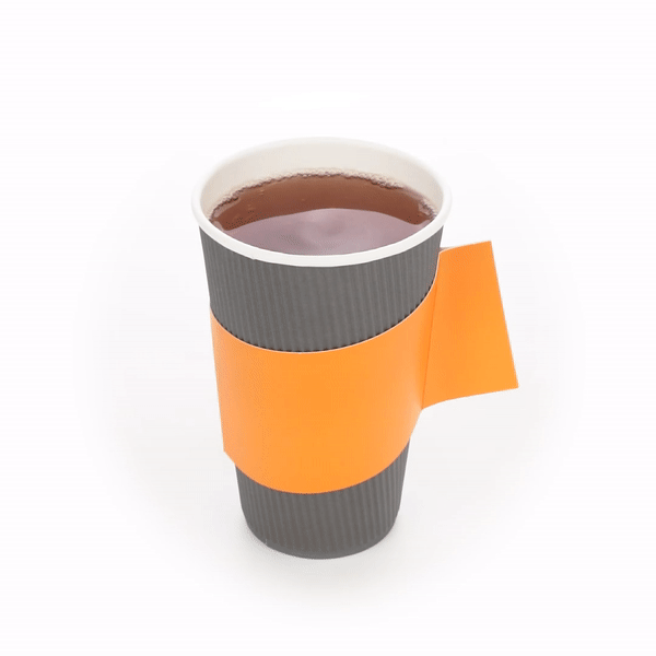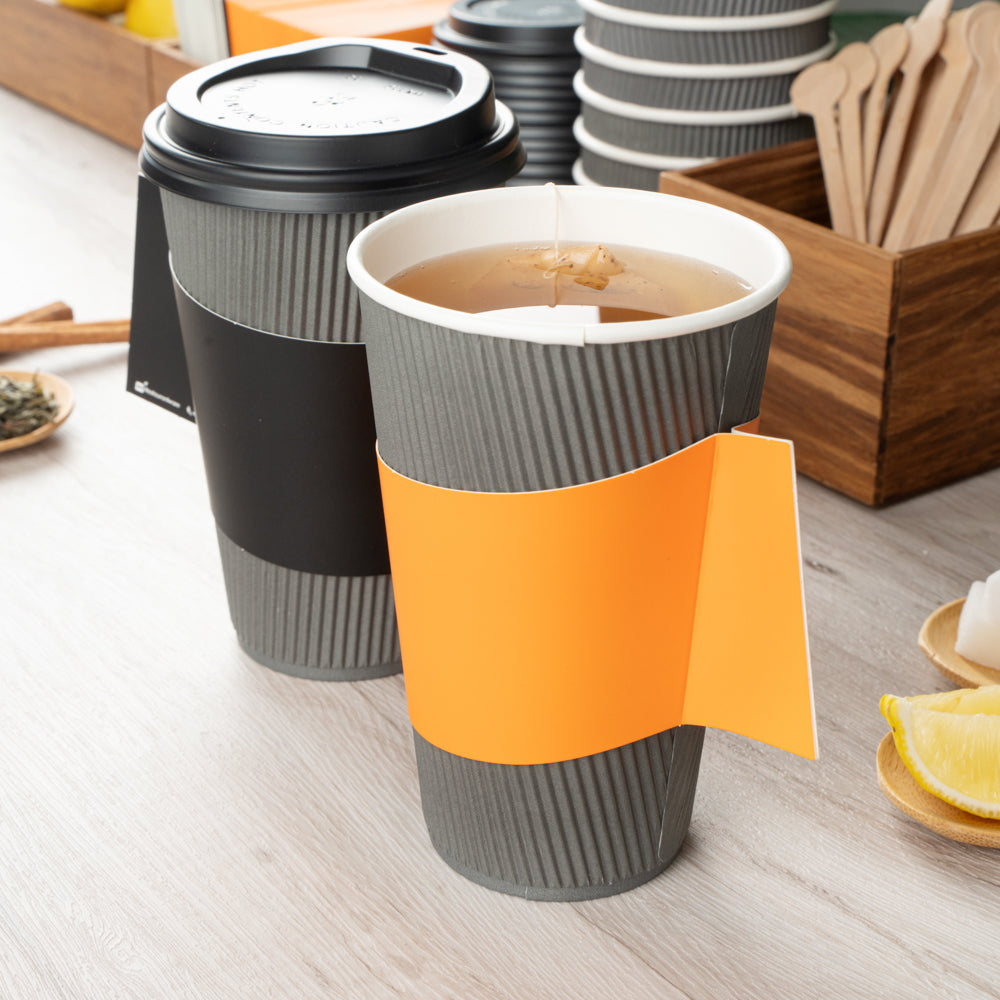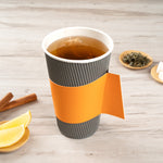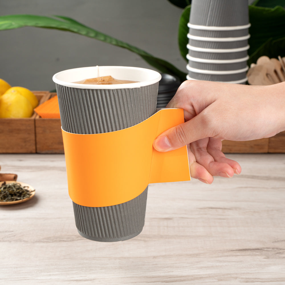 ORANGE PAPER COFFEE CUP SLEEVE -WITH HANDLE, FITS 12 / 16 / 20 OZ CUPS