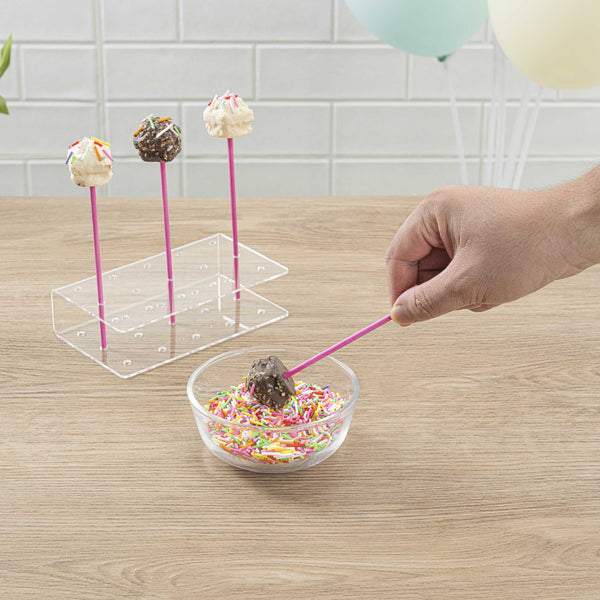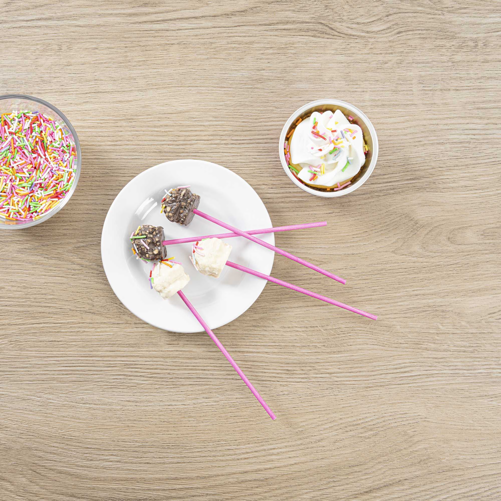 Embellish your treats using our Restpresso Pink Paper Cake Pop and Lollipop Sticks. Made from premium paper, these cake pop straws are biodegradable and commercially compostable. The vibrant pink shade of these colored cake pop sticks adds a dazzling touch to your bite-sized desserts. Manufactured to reduce your time and energy, these paper lollipop sticks can be disposed of after large events, accelerating the cleanup process. Measuring 6 inches in length, these cake pop sticks are great for serving chocolate brownie bites, peanut butter fudge, chocolate-covered marshmallows, or homemade candies. Shipped in a 25 count box. This item will only degrade outside of the traditional solid waste stream.