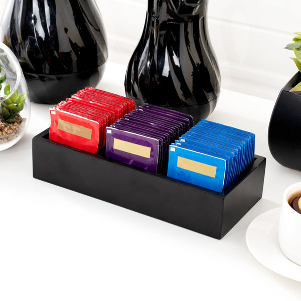 - Multiple compartments to organize tea bags, sugar packets, and more