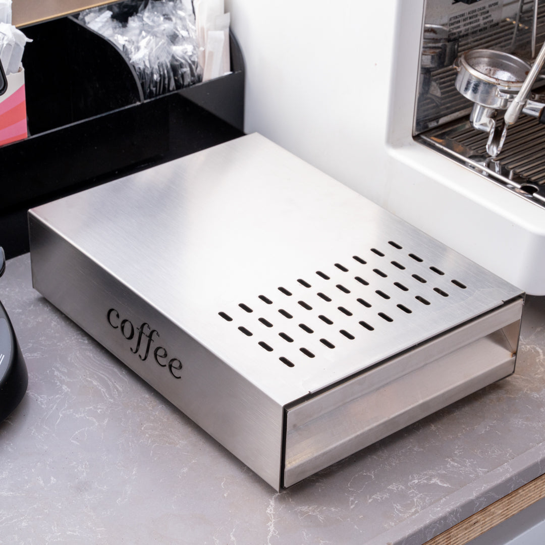 Constructed from durable stainless steel, this espresso knock box is designed to support the weight of your heavy espresso coffee grinders and coffee machines. This stainless steel knock box drawer is equipped to withstand everyday use and maintain its beautiful finish.