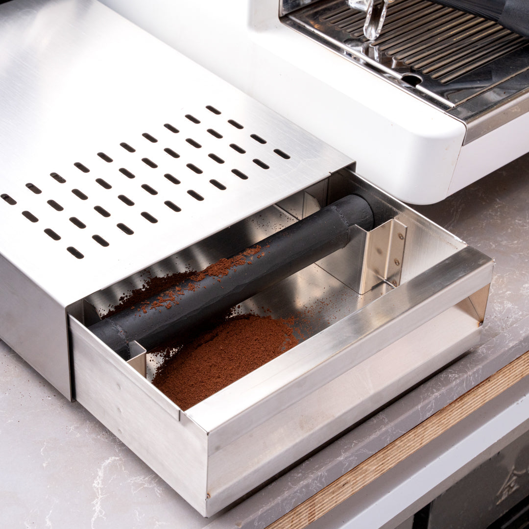 This knock box drawer features a vented design that increases airflow to reduce condensation and mold. Plus, it allows you to easily sweep leftover grinds on the grinder or knock box into the drawer without needing to slide it open.