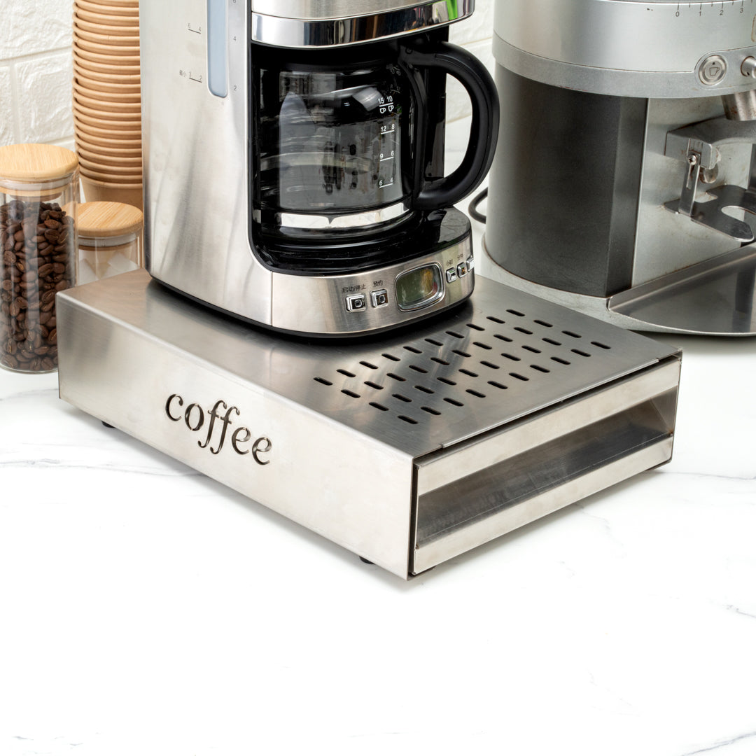 SILVER STAINLESS STEEL COFFEE KNOCK BOX DRAWER
