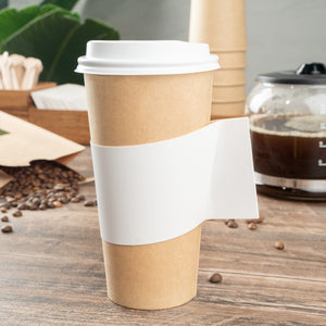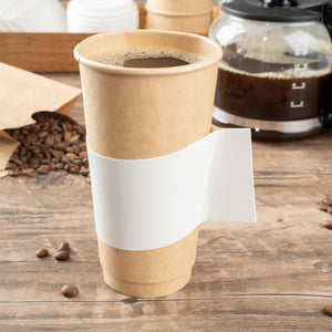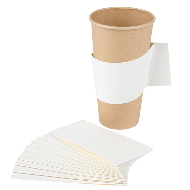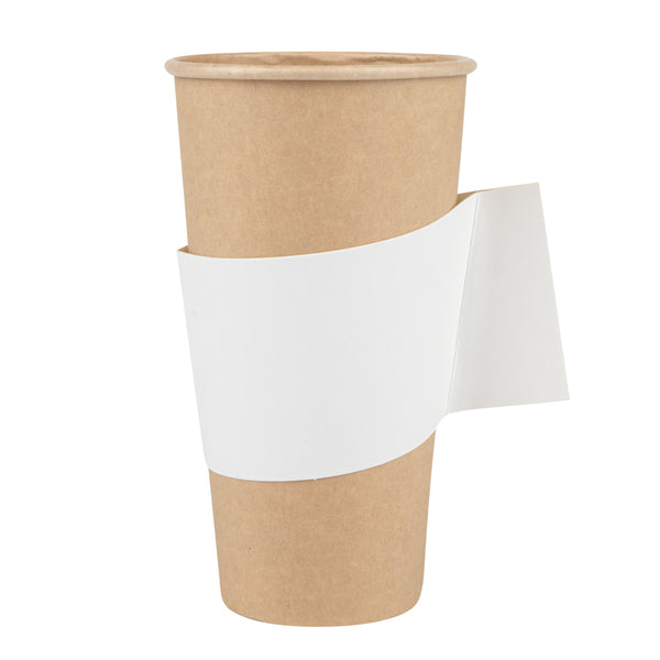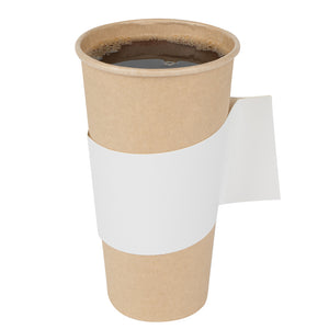 WHITE PAPER COFFEE CUP SLEEVE - WITH HANDLE, FITS 12 / 16 / 20 OZ CUPS