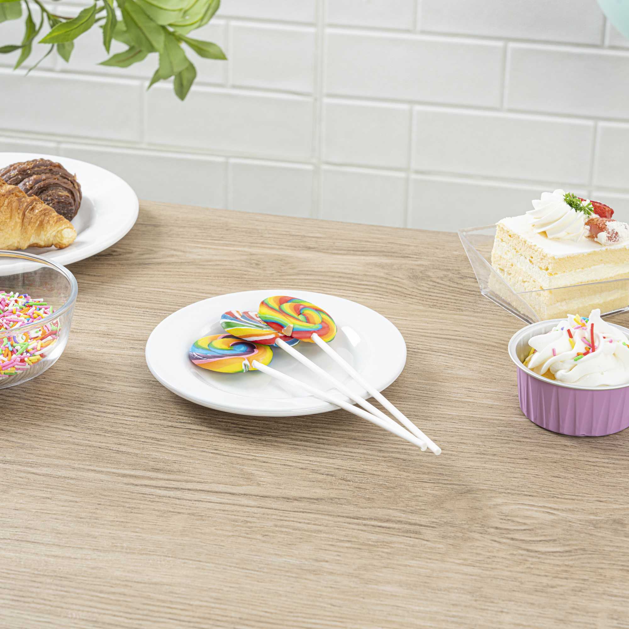 Serve mouthwatering treats and coffees with our Restpresso White Paper Coffee Stirrers and Lollipop Sticks. Manufactured from premium paper, these multipurpose paper sticks can be used as both cake pop sticks or coffee stirrer sticks. Featuring a biodegradable and commercially compostable construction, these white paper sticks reduce your carbon footprint. With a solid design, these white lollipop sticks can easily maintain their shape carrying hefty treats or stirring hot coffees. The white finish of these paper lollipop sticks complement any coffee cup design or colorful cake pops. The disposable feature of these multipurpose coffee stirrers sticks simplifies the cleaning process. Each of these sturdy cake pop sticks measures 6 inches in length. Sold in a 100 count box. These items will only degrade outside of the traditional solid waste stream.