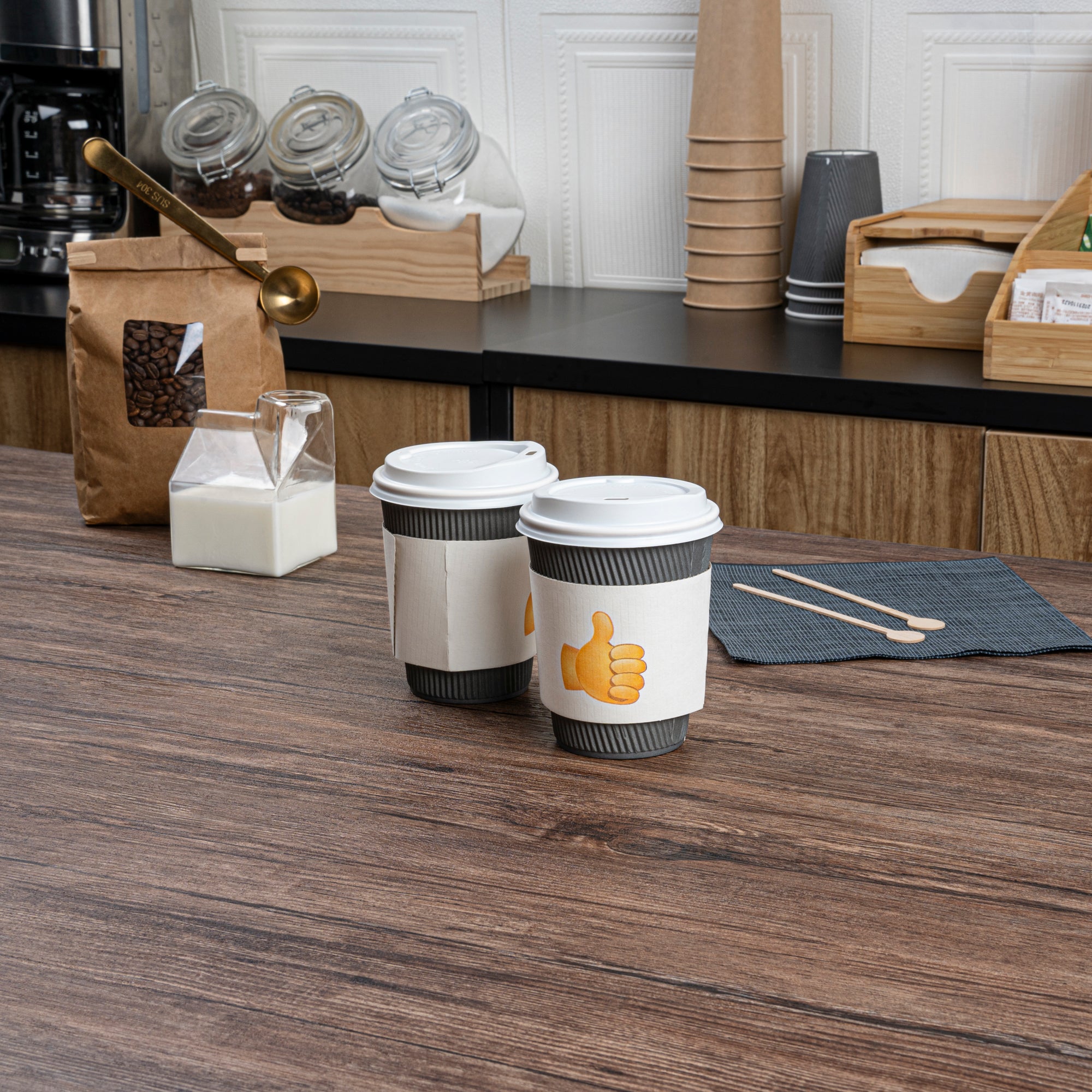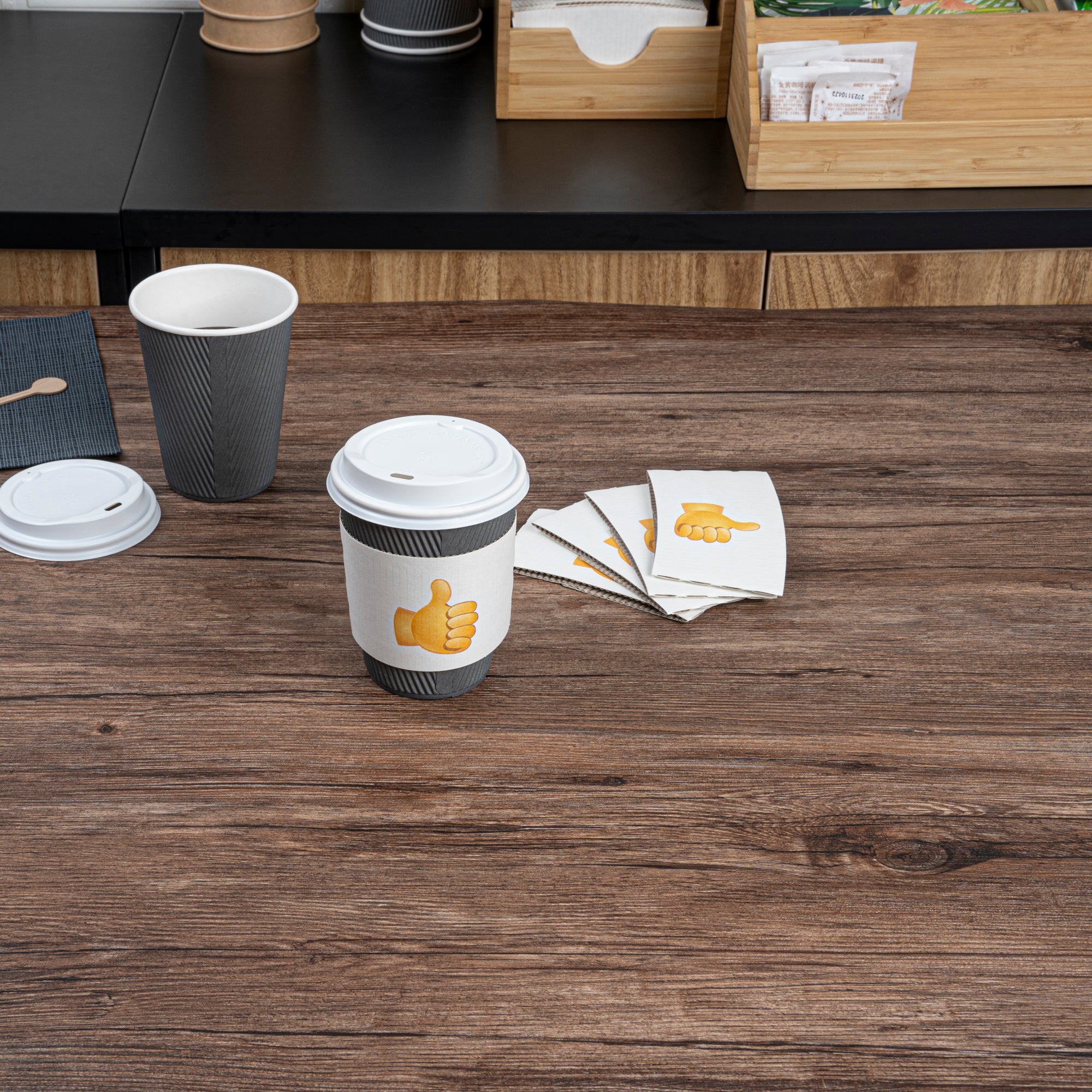 To enhance the drink experience of your customers, these paper sleeves come with a variety of fun emojis. Plus, these hot beverage sleeves come in a white and kraft finish.