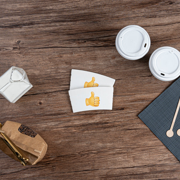 WHITE PAPER THUMBS UP EMOJI COFFEE CUP SLEEVE