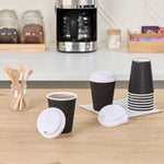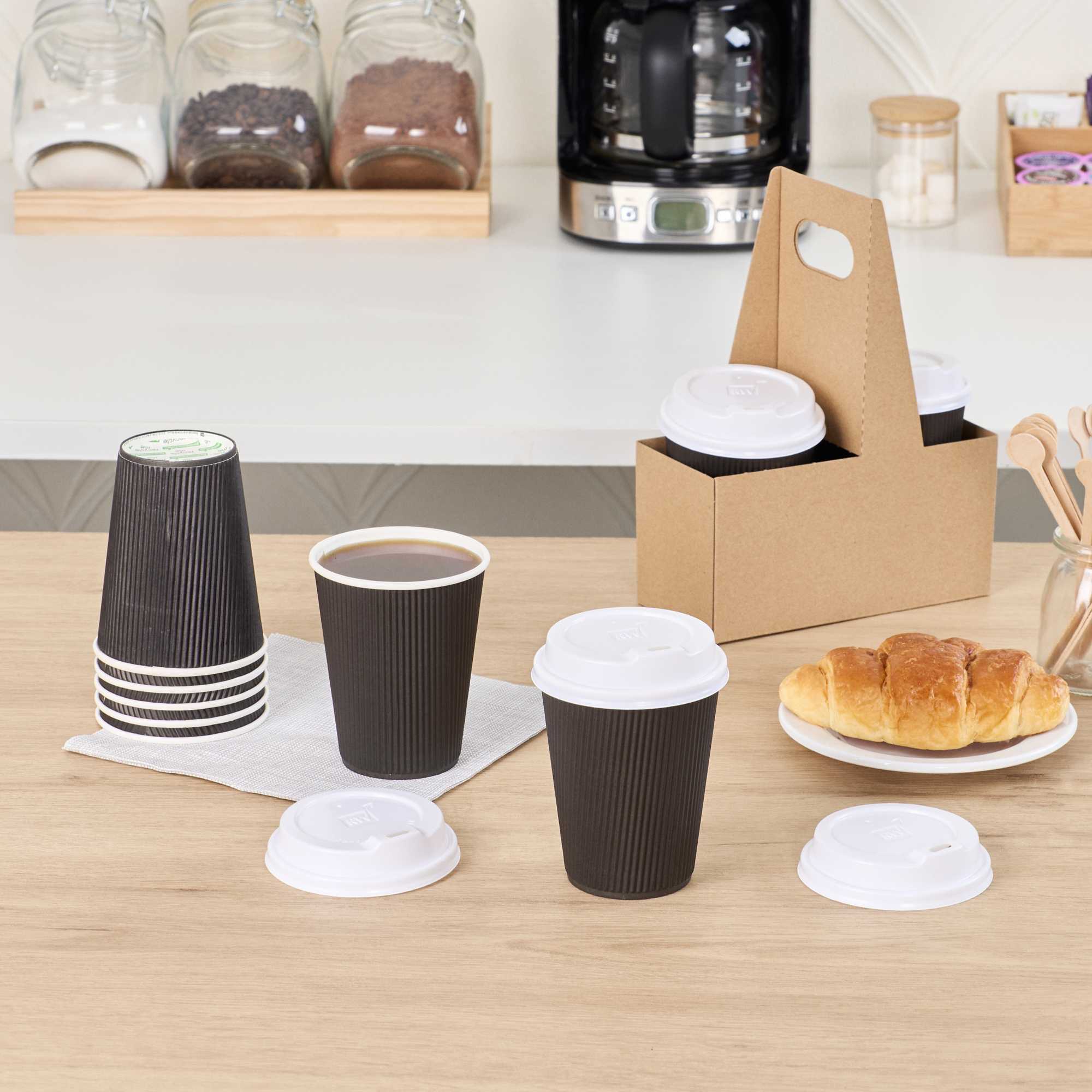 Premium plastic lids snugly fit on coffee cups without splitting and won’t break while in use. No more coffee stains or spills on your clothes!