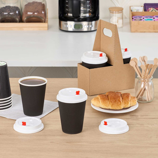 Premium plastic lids snugly fit on coffee cups without splitting and won’t break while in use. No more coffee stains or spills on your clothes!
