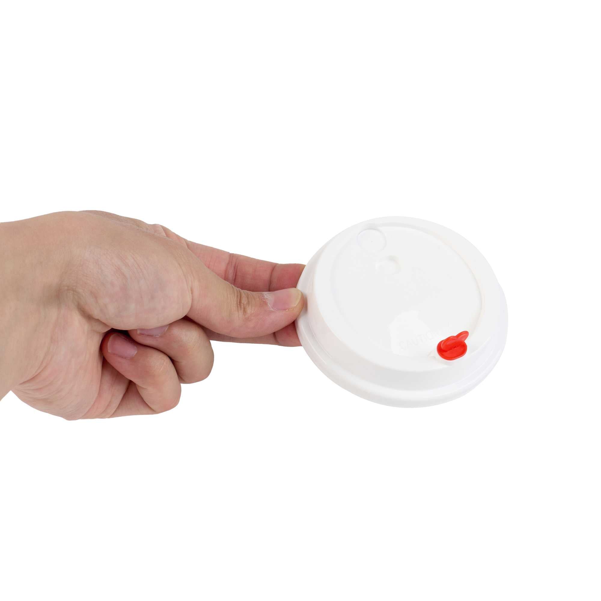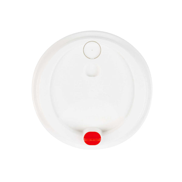 WHITE PLASTIC COFFEE CUP LID - FITS 8, 12, 16 AND 20 OZ, WITH RED PLUG