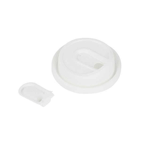 WHITE PLASTIC COFFEE CUP LID - WITH PLUG, FITS 8, 12, 16 AND 20 OZ