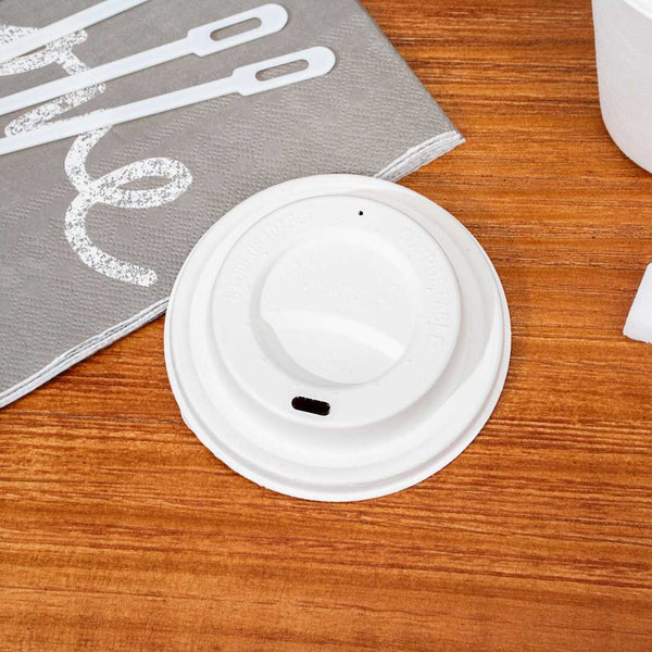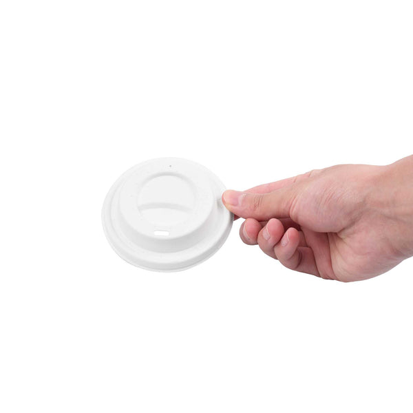 WHITE SUGARCANE / BAGASSE COFFEE CUP LID - FITS 8, 12, 16 AND 20 OZ
