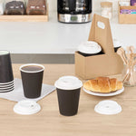 Complete the look of your coffees or teas by covering them with our classic, white coffee cup lids. They perfectly complement any coffee cup design!