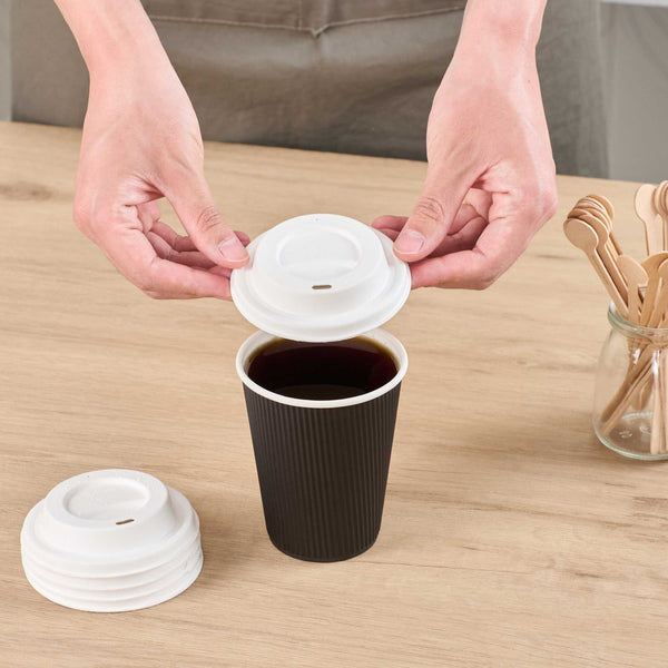 Specially designed to fit Restaurantware's 8-, 12-, 16-, and 20-ounce coffee cups! These lids for cups are sold in bulk, making them ideal for parties and special events.